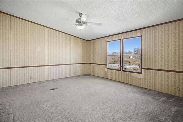 Country opportunity in Princeton, KS, located in Central Heights School District. This 3 bedroom, 2 bath manufactured home sits on approximately 15 acres with a shared pond and rural water. The property offers privacy, mature trees, and plenty of space for outdoor use, hobby farming, or future improvements. The home features an open living area, functional kitchen, and a private Master suite with attached bath, plus two additional bedrooms for flexibility. A storm shelter provides added safety and peace of mind. Peaceful rural setting while still within reasonable distance to nearby towns. Ideal for buyers looking for acreage, country living, or an investment project. Home needs some TLC and is being sold AS IS.