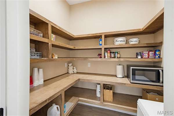 - Ceiling Fan(s), Crown Molding, Custom Cabinetry, Double Vanity, Granite Counters, High Ceilings, Natural Woodwork, Open Floorplan, Recessed Lighting, Separate Dining, Special Millwork, Storage, Walk-In Closet(s), Walk-In Pantry, Workshop/Hobby Area