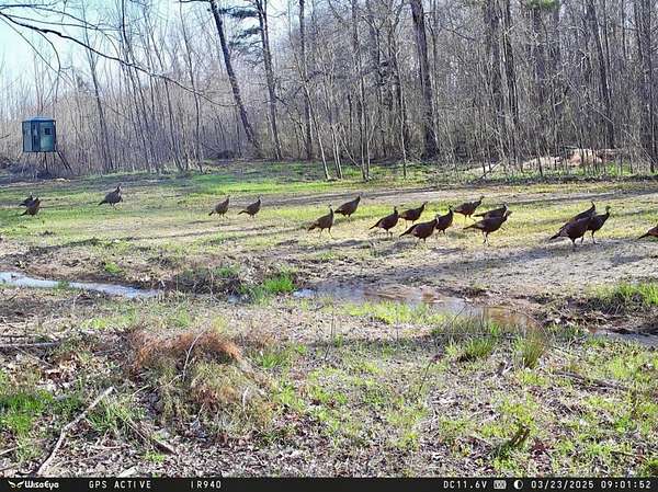 Large pasture areas offer flexibility for livestock, hay production, row crops, gardens, or additional food plots. Two established food plots are already in place and include Redneck hunting blinds positioned to overlook the fields. Dense undergrowth and early successional cover provide bedding and nesting habitat for deer, turkey, and small game.