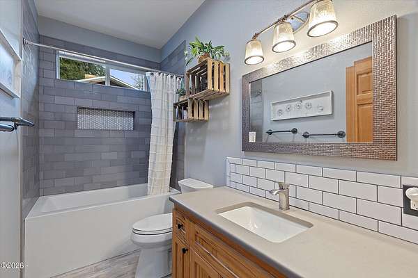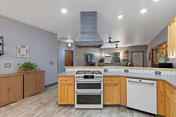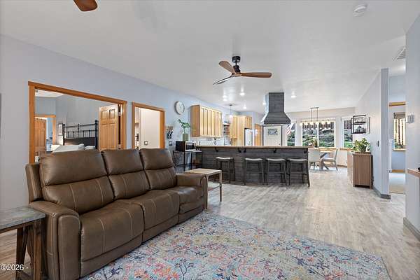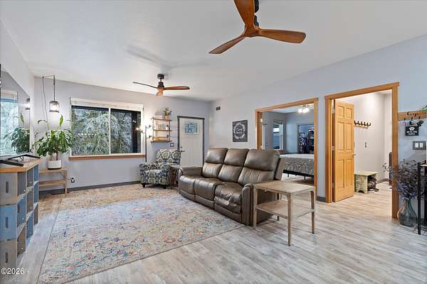 DREAMY ACREAGE with tranquility of Bear Creek babbling through your property. You are immediately greeted with a fully renovated, open floor plan and spacious living area. Kitchen features GE Cafe(C) appliances, quartz countertops and farmhouse sink. Primary bedroom includes a spa inspired bathroom with tile shower. Two sizable guest bedrooms and guest bathroom complimented with a deep soaking tub. Attached 2 car garage leads into the laundry room with ample space to drop shoes and hang jackets. Immaculate fully fenced outdoor space and covered patio! Property has Raspberries, blueberries, apple trees, pear trees, plum trees and beautiful roses. Raised bed veggie gardens are right off the kitchen. Oversized shop includes hobby room and wood burning stove. Escape to the brand new Shed with electric and is fully finished off for an extra office or workout space! Covered and enclosed RV Parking. Updates within the last 2 years include: Brand NEW ROOF, new furnace and heat pump, new windows in primary bedroom, enclosure of RV or storage building, gazebo and hot tub. Incomparable attention to details through out this one level home!
