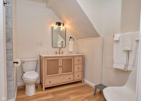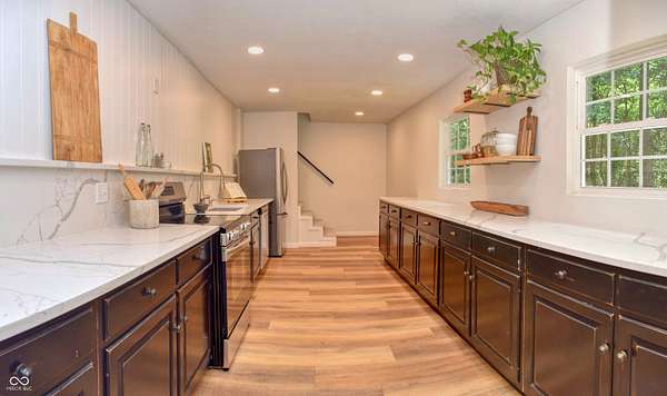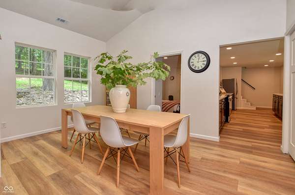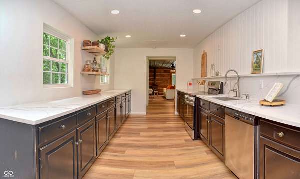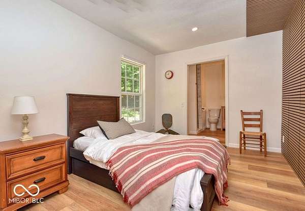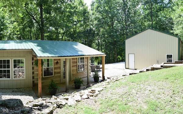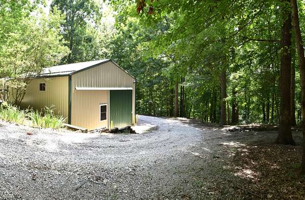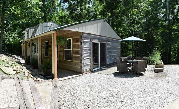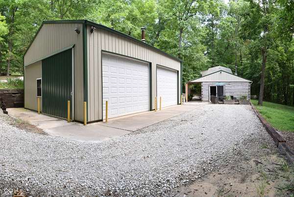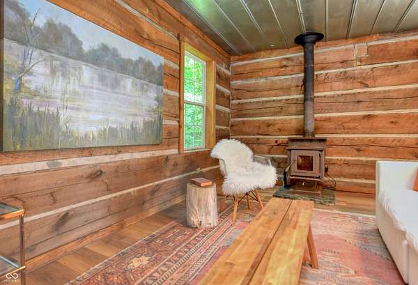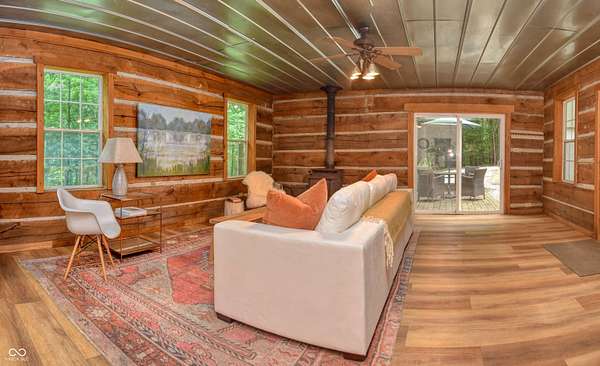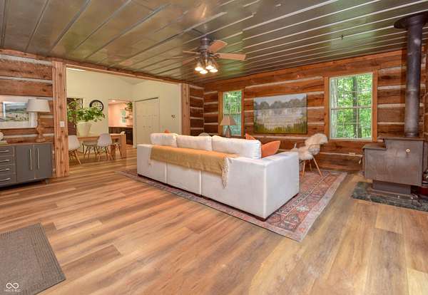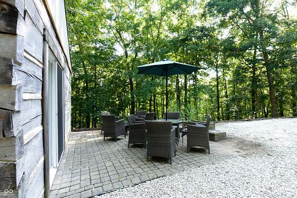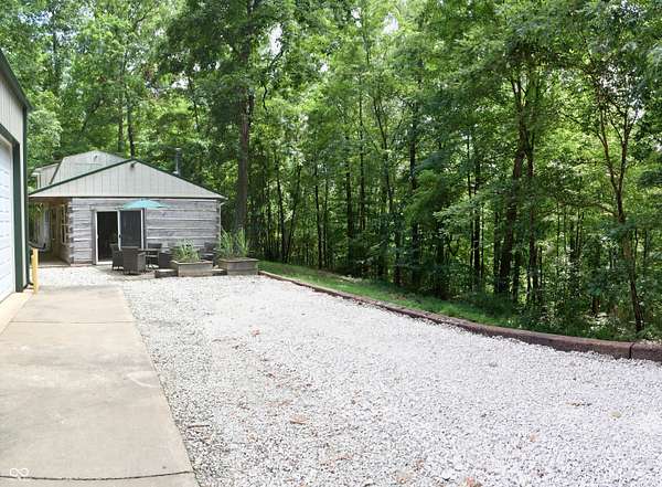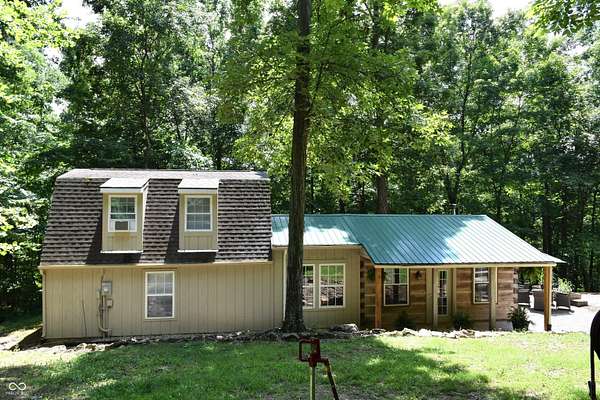 APPRAISED at $330,000! Who doesn't dream of owning a lake cabin in the woods? Nestled at the end of a long gravel driveway sits this rural, yet modern escape from it all! Enter the living room and you're greeted by log walls that create a character-filled space that is both inviting and unique. The heart of the home: the vaulted dining space, flooded with natural light and views of your wooded property; plus an in ceiling speaker system to play your favorite music while you cook dinner or entertain. The updated kitchen boasts Amish made cabinets, all new SS appliances, and quartz countertops/backsplash providing both beauty and functionality. The main level bedroom has its own bathroom w a marble tiled shower. Upstairs you'll find your own private master ensuite with updated bathroom plus double closets. Step outside onto your patio/outdoor dining area, providing the perfect space to dine alfresco and enjoy the woods view. The lofted 4 car garage supplies ample practical storage and heated work space for all your projects. Secluded, updated, lakefront property, on 3.5 acres, just 20 minutes from Bloomington...this residence is truly a unique find!