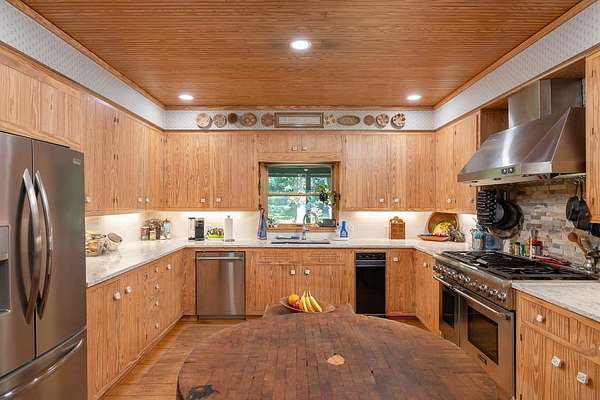 - Dishwasher, Double Oven, Gas Cooktop, Gas Oven, Gas Water Heater, Plumbed For Ice Maker, Range Hood, Trash Compactor