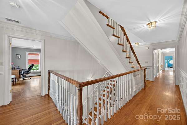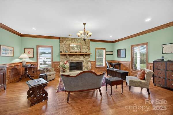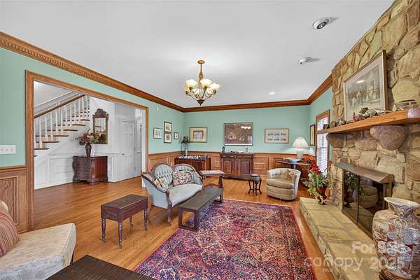 Estate Home and horse property in Clemmons on 7+ acres with 3 pastures! This beautifully crafted home features hardwood floors, wainscotting and detailed trim. Fireplaces in the living room, den, and main level primary suite. Spacious kitchen with statement hood, center island range, breakfast area, & access to brick patio. Upstairs are 3 generous bedrooms, bonus room, large rec room with wet bar, & 2 balconies! 3rd level has 2 more rooms that would be great office/studio spaces. The 5 stall barn features a fly-spray system, feed room, wash rack, septic system, and secondary living area plus office, additional bath & laundry. Living room space could be converted back to an aisle. 3 automatic waterers convey. So much potential with the tennis court and pool to round out this dream property with some attention. Priced well below recent appraisal. Private shared road, do not drive down without appointment.