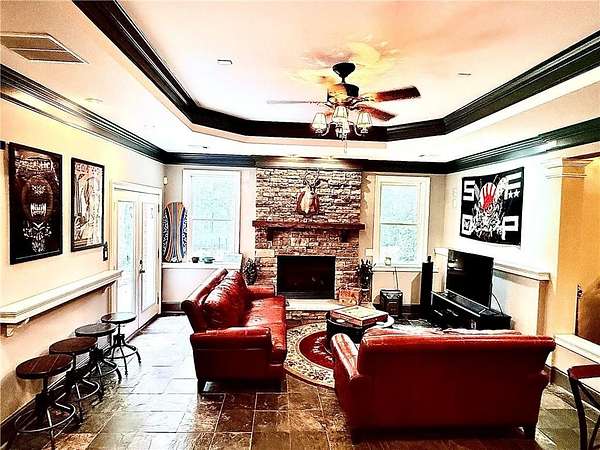 ATTENTION $40K+ UNDER APPRAISED VALUE! Stunning traditional four-sided brick home with three car garage and amenities galore. Your own 5-acre private oasis that backs up to Settendown Creek on a cul de sac lot. Gorgeous saltwater pool with pavilion and firepit; great for entertaining family and friends. A grand 2-story foyer and family room with an open and spacious layout; rich crown molding throughout. A large kitchen island with induction stovetop, along with granite countertops and a tile backsplash. Large master suite with sitting room and dual walk-in closets. Oversized master bathroom with jacuzzi tub and large tiled-in shower. Remarkable finished basement with everything you need for upscale living featuring: Theater room (theater seating, projector/screen, surround sound included, approx. $7K value free of charge), Wet bar, Lounge, Living room, Game room (pool table w/ ping pong tabletop conversion, chairs and table included, approx. $6K value free of charge) Office, Storage area with shelving ** Also perfect for an in-law suite/multi-generational living Legends of Settendown Creek subdivision is an esteemed equestrian neighborhood with large lots ranging from 2 to11 acres with custom built executive homes, a private park, pond, pavilion, picnic area and walking trails. About a mile from Pooles Mill elementary school and about five miles to the new Publix. Legends is also in close proximity to Pooles Mill Park that features a historic covered bridge. Owner is licensed Georgia real estate agent.