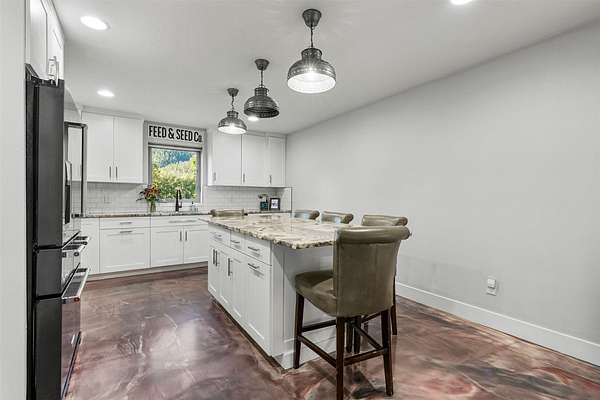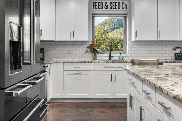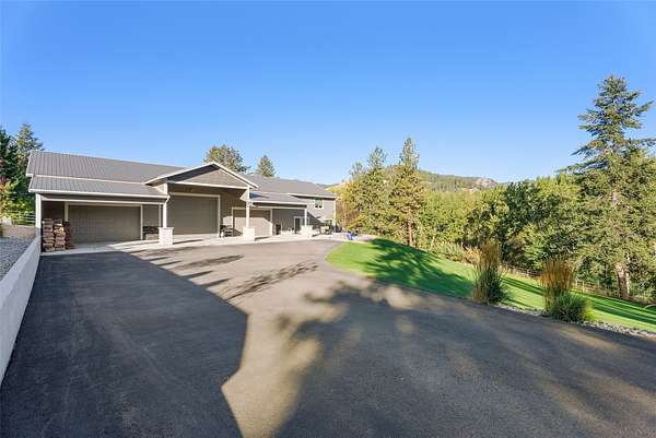 MOTIVATED SELLER'S OFFERINGA $50,000 rate buy down at closing plus flexible rent-back option!! Look no further than this stunning 4.57-acre serene lifestyle retreat-every fly fisher's dream!! This property has it all, from your very own 360(+-) ft of Lolo Creek waterfront, crystal waters packed with Brown Trout, Rainbow Trout, Brook Trout and Cutthroat Trout for fly-fishing heaven right out your front door all while taking in the towering Pines, Cottonwoods, and Aspens that border the lush, well-manicured lawn and the fruit trees galore, with 12.50 acre feet of irrigation rights, await! Stepping into the robustly built 5000 sq ft 40x100 barn-dominium style house packed with R38 insulation in the stick-framed 2x8 walls and R60 in the ceilings along with R19 in the interior walls, 17'4" sky-high ceilings, and has a 3-zone radiant heat flooring system. The 3,000 sq ft shop area runs on one zone and also offers a wood stove for that cozy crackling feel, along with dual-voltage 220/110 wiring. There are three garage bays: 2 measuring 16'x10' and the middle measuring 18'x14'. The secure 216 sq ft room opens up through a solid vault door to an immaculate safe room with a granite top work bench and 2 full built in safes, epoxy floors and wood accent walls, and yes, it keeps going to another 216 sq ft room above equipped with rubber flooring ready for your workout gear. The lower-level living quarters, heated by zone two radiant heating, you'll find all have epoxy flooring and granite counters and custom cabinetry throughout. The office offers 2 large desk spaces that overlook Lolo Creek and meadows. The Kitchen has black stainless appliances, large island, coffee bar and a creek-view that never gets old. The bathroom is a sight to behold with the large free standing soaker tub, dual vanities, rain head shower in a tiled walk in along with the washer/dryer that offers a large folding table and utility sink. Upstairs is heated by zone three and you'll notice that's where the views take over- the large master bedroom's black brick accent wall throws instant drama to the room adding to its large space. Bedroom #2 and the extra room's Creek views are picturesque and then to add the glow of all the natural light that shines through during the day. Outside you have all covered parking and a great concrete patio space to enjoy the amazing creek bed fall colors while soaking in the hot tub taking in all the bald eagles who like to coast over the trees and glide right above the water, it truly is a sight to see. Climbing that asphalt drive, cross the bridge over the seasonal Schroeder-Mclay irrigation ditch that splits this gem. The bare lot awaits your dream home, with underground irrigation, all utilities ready and marked, endless possibilities!! The manicured landscaping steals the show: lush lawns, fire Ash Maples, bright pink Crab Apples all with their slick drip system, hand built retaining wall that lines the entry way. The overly large upper shop offers two sides both with auto doors. The first side measuring 22' x 28' has mega storage with its shelfing and lighting. The 2nd side measuring 14'6" x 40" is insulated, sheeted, dual voltage 220/110 wiring and heated with a 12' x 11'6" door -perfect for the boat, horse trailer or whatever your needs are. The fortress-worthy chicken coop, fully fenced, wired and rock-solid ready for your flock with its water system tied into the massive garden paradise, which is also has fully dripped irrigation that is tied to the seasonal underground sprinklers that get professionally blown out every year. The sprawling deer proof garden is ready for its new owner's green thumb. There are thriving raspberry, blackberry, strawberry and blueberry bushes along with galvanized tomato bins ready for next year's take off. This property has endless options, due to being permitted for 2 residents-live in the shop while you build your dream home, then turn the shop living quarters into extended living quarters o