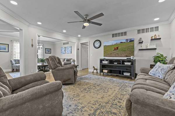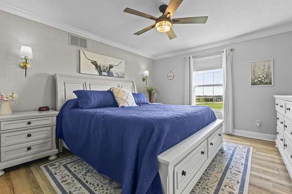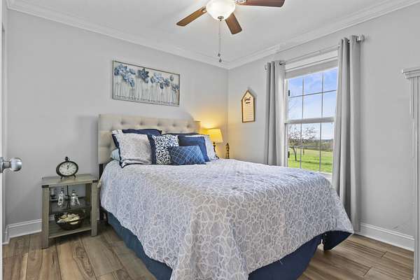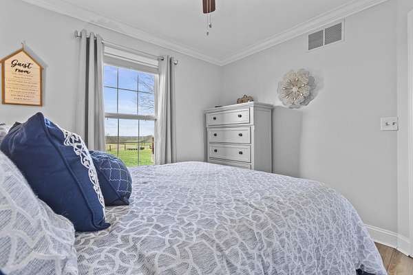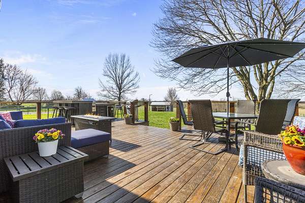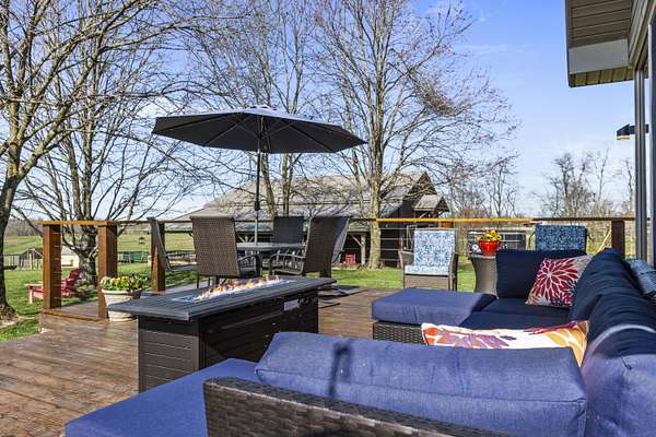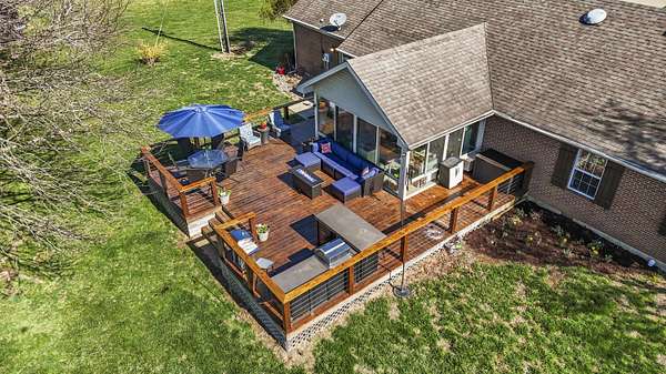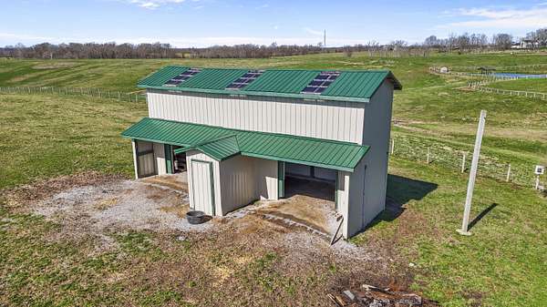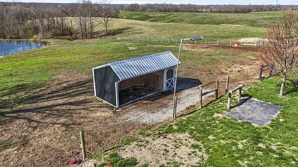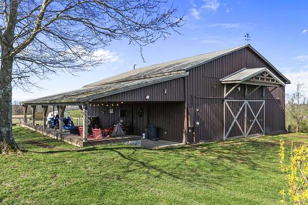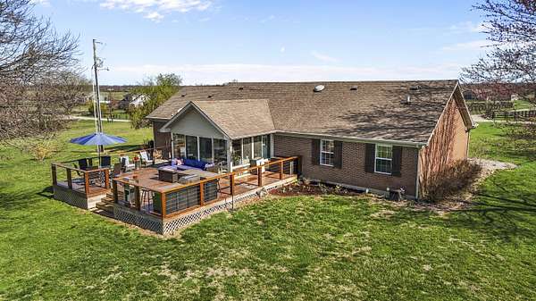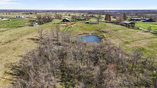 Experience the best of Kentucky living on this beautifully updated 32+/- acre farm, perfect for horses, recreation, or hobby farming! This beautiful property features 12 acres of fenced pastures with horse-safe Finishline wire-free fencing, three pastures with automatic waterers (2024), 16 acres of wooded acreage rich with wildlife and morel mushrooms, and a stocked pond with bluegill, bass, and catfish. Farm improvements include a 30x50 barn with loft, electric and water, an additional animal shelter with hay loft and elevator, chicken coop with automatic door, run-in shed with tack room, round pen, reseeded pastures (2025), and a large organic garden. The modern home offers a fully remodeled kitchen (2025) with quartz countertops, large island, pull-out cabinetry, pot filler, LED lighting, and new appliances, plus engineered hardwood flooring, geothermal HVAC, updated bathrooms, laundry, sunroom, and a spacious Amish-built deck (2019). Enjoy a separate dining room, first-floor bedrooms, and a flowing living/dining area. The main bathroom boasts a walk-in shower with a luxury Grohe system and tiled flooring, while hardwood floors throughout the main living spaces add warmth. The attached two-car garage includes a durable epoxy floor. Conveniently located 4.5 miles from I-64, 10 minutes to shopping, and 30 minutes to Lexington-this property offers the rare combination of modern comfort, functional farm amenities, and serene country living, making it a true Kentucky dream home!