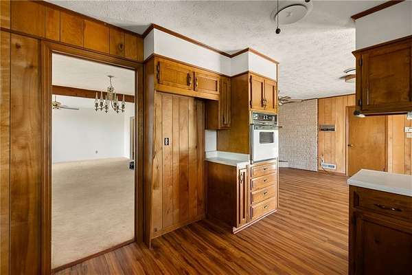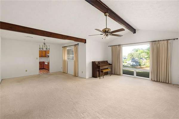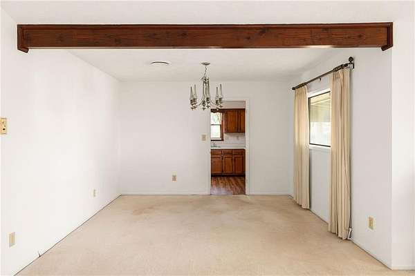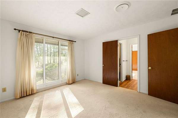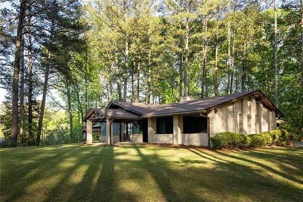 They don't build them like this anymore! Tucked away beyond a tree-lined drive, this classic mid-century ranch sits on approximately 3.76 serene, wooded acres, creating your own private nature retreat. Inside, timeless design elements include a double-door entry opening to a slate foyer and a vaulted family room filled with natural light. The retro kitchen offers generous cabinet and counter space and flows into a fireside keeping room, creating a warm and inviting space for everyday living and entertaining. The bedroom wing is positioned on the opposite side of the home and features three well-sized bedrooms with large closets, great natural light, and two full bathrooms. An attached two-car carport adds both style and functionality, while two covered porches extend the living space outdoors. The flat, walk-out backyard includes a workshed and is fully surrounded by trees for complete privacy.