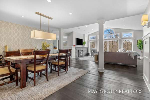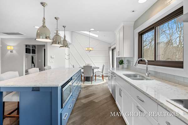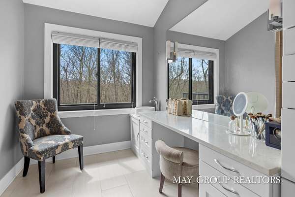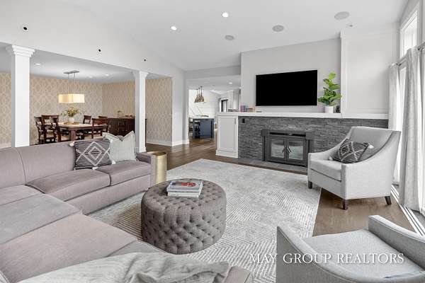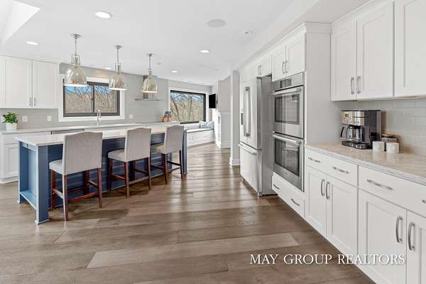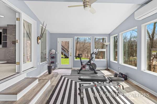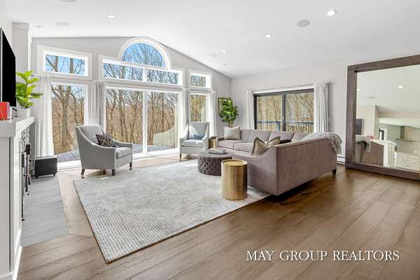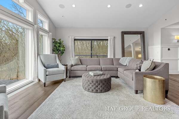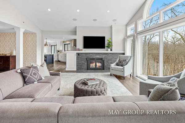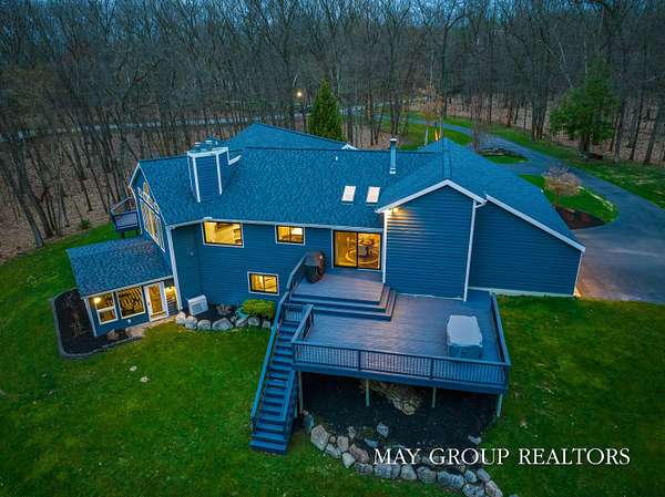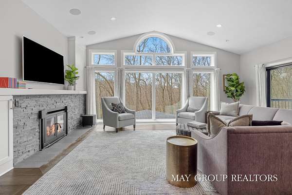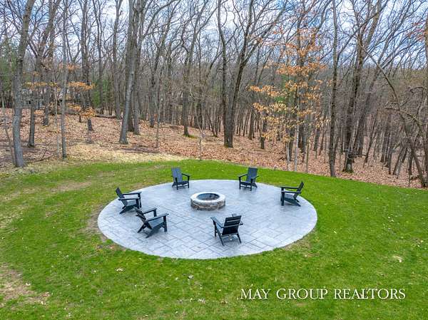 Set on 3.38 acres of private, wooded beauty, 8355 Wilderness Trail NE showcases 4,648 sq ft of completely transformed luxury living where every square inch has been meticulously renovated with exceptional attention to detail. The stunning interior features hand-scraped oak floors and an expansive kitchen with quartz countertops, oversized center island, custom tile backsplash, and a spacious eating area, complemented by a separate formal dining room. Beautiful views of the surrounding landscape are enjoyed from nearly every room. Enjoy two fireplaces, a main-floor primary suite with incredible tile work, dual vanities, and a dedicated makeup space, plus a private office. The walkout lower level offers a spacious family room, recreation and fitness areas, and two oversized suites--every bedroom is its own private suite. Expansive outdoor deck space enhances the home's connection to nature, perfect for entertaining or relaxing. Extensive updates include new windows, roof, A/C, whole house generator, and professionally designed landscaping with a stamped concrete fire-pit, creating a truly turnkey retreat just minutes from Ada.