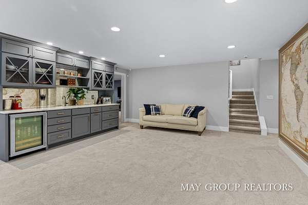 - Center Island, Garage Door Opener, Pantry, Wet Bar