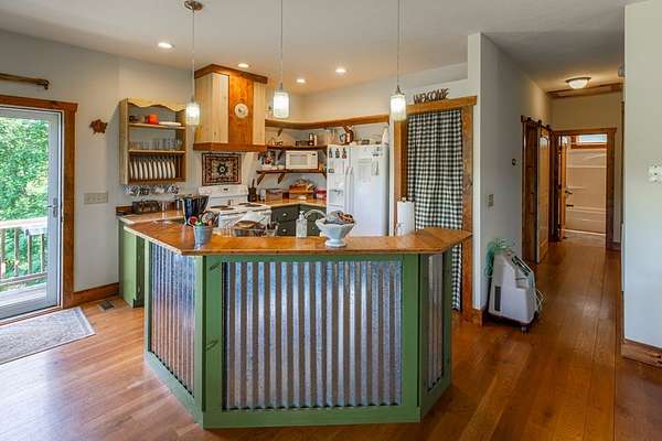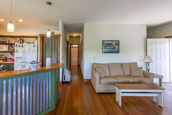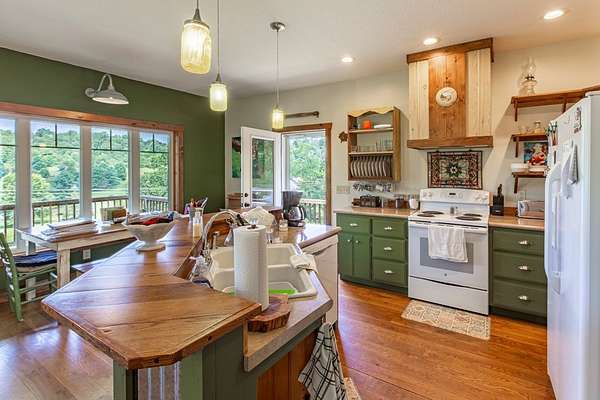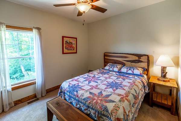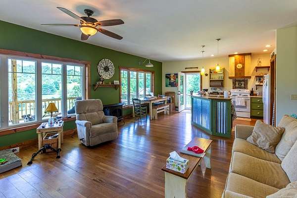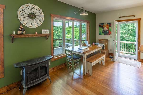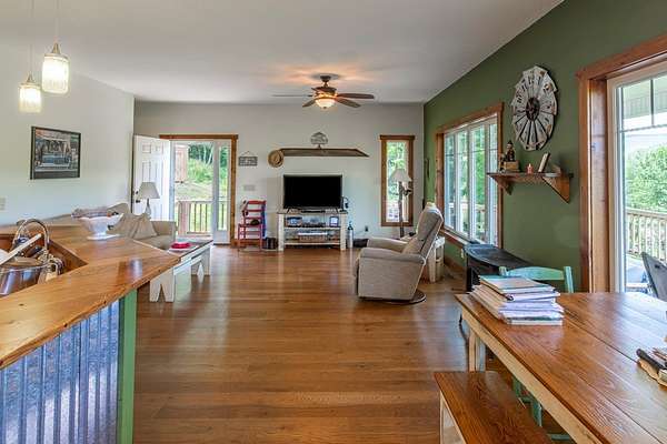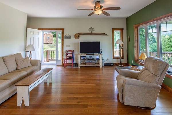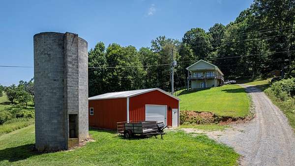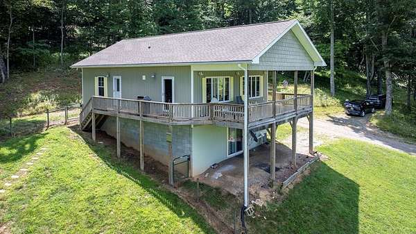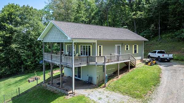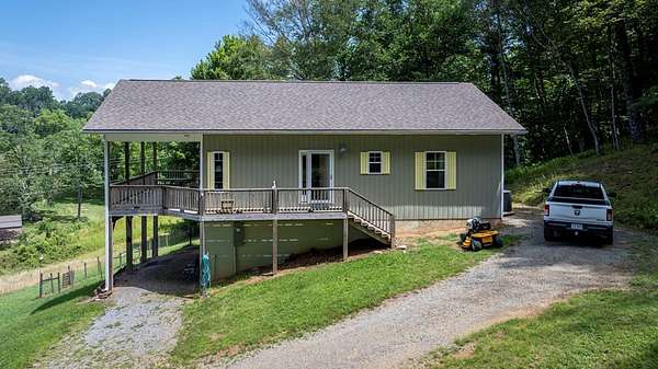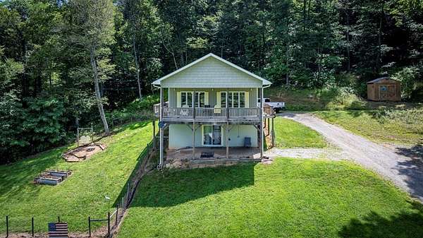 Lake View Home in Blue Ridge Mountains. This 2 bed/ 2 bath home on 6.72 acres has fantastic view of Hidden Valley Lake and the surrounding mountains. Lots of large windows and a nice wide front porch make this home perfect for enjoying the outdoors inside or out. This is a quality built, custom home with great features including solid oak flooring and 30 year architectural shingle roof . A heated, walkout basement that also has access from the inside is very close to being finished out and could double the finished square footage. There is a very nice 20x30 shop on the property that has power and heat. This could also be used as storage. A lovely fenced in yard has a firepit and some raised beds to do a little gardening. This property is located just minutes from the town of Independence Va and in close proximity to many recreational opportunities.