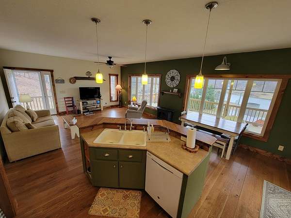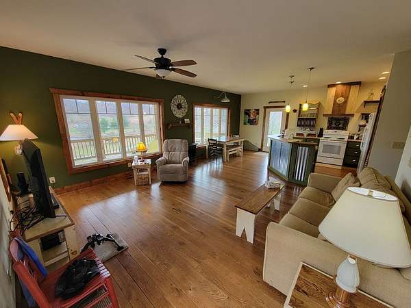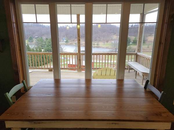 Hillside Cottage Retreat with Lake & Mountain Views on 6.7 Acres Tucked into the hillside and thoughtfully designed to capture breathtaking views, this custom-built cottage/cabin offers the perfect blend of privacy, craftsmanship, and natural beauty. Overlooking a peaceful mountain lake with scenic mountain backdrops, this one-of-a-kind property is a rare find. Set on 6.7 acres-with approximately 5 acres of mature woods-the land features natural rock outcroppings, three springs, and a small stream, creating a truly serene and picturesque setting. The home itself was custom built by a contractor as a personal residence, showcasing quality construction and a well-planned, open floorplan. Inside, you'll find wide plank oak flooring, abundant natural light, and large windows strategically placed to maximize the lake and mountain views. Step outside to enjoy expansive decking wrapping around approximately of the home, ideal for relaxing, entertaining, grilling, or simply soaking in the scenery-while also offering a secure space for pets. Property Highlights: Custom hillside cottage with open floorplan Stunning lake and mountain views from inside and out 6.7 acres with wooded and open land, springs, and stream Unique silo structure from the property's farming history 24x32 detached workshop/storage building with power and heat Garden area with raised beds Approx. 3,500 sq ft fenced dog enclosure Community lake (~8 acres) for fishing and enjoyment Community shelter for gatherings and events Lower Level Potential: The walkout basement offers over 2,200 sq ft total (approx. 1,100 finished / 1,100 unfinished), including: Half bath already in place Full ceiling height and ductwork installed Ideal for additional living space, rec room, theater, workshop, or guest area Whether you're looking for a full-time residence, a mountain getaway, or a unique property with room to grow, this home delivers character, quality, and a setting that's hard to match.