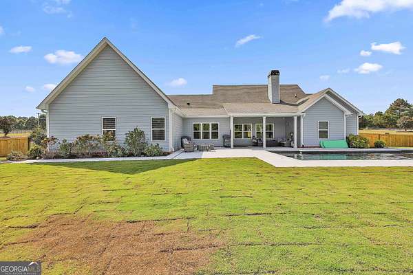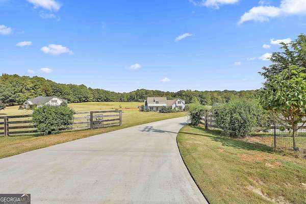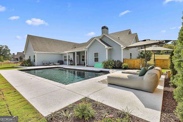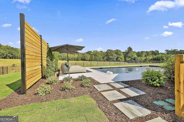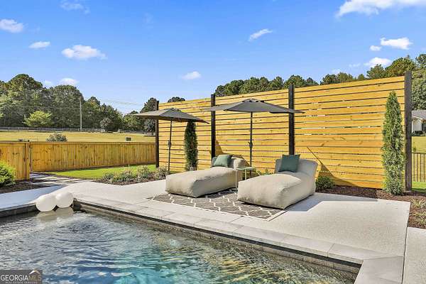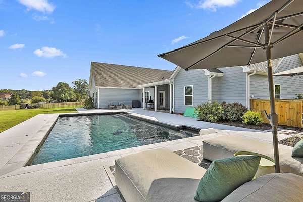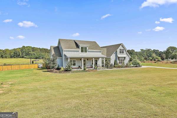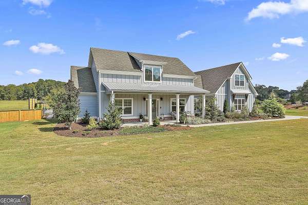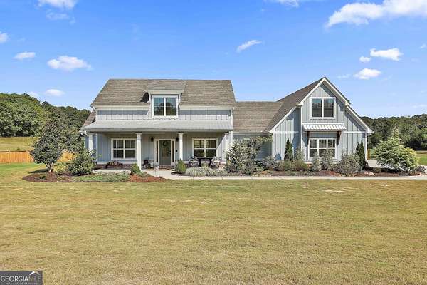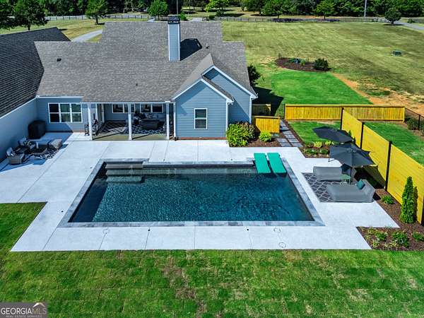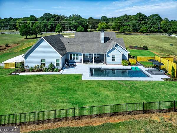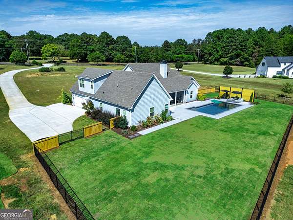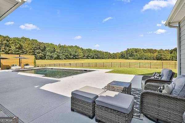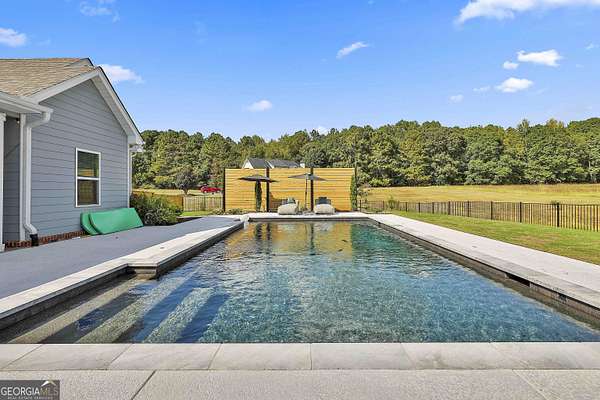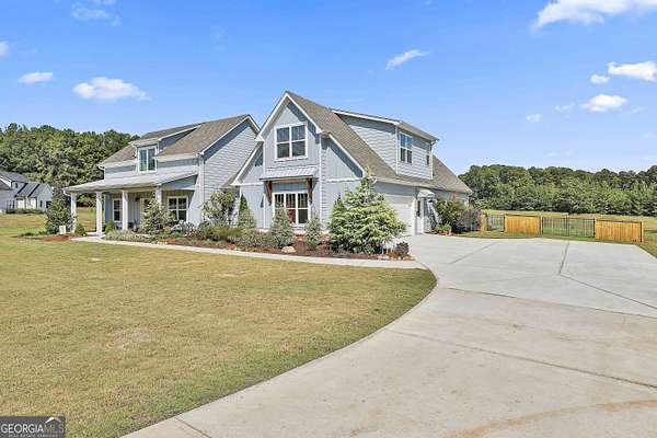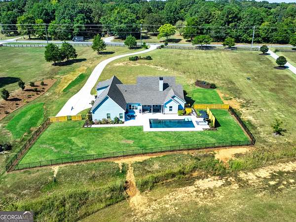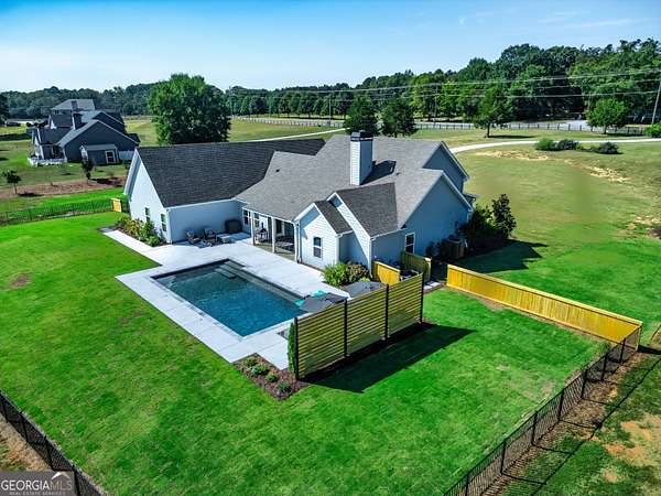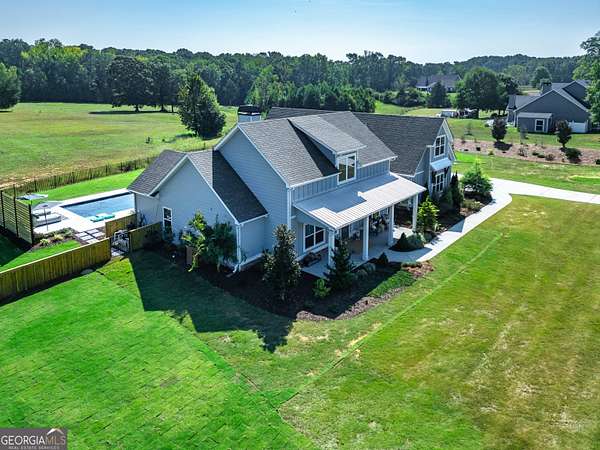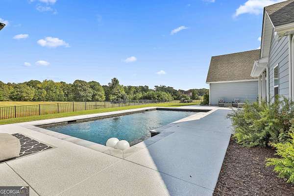 Welcome to 836 Old Greenville Road, a private 5.64-acre retreat in Fayetteville where modern design meets country charm. Built in 2019 by Trademark, this 5-bedroom, 3.5-bath home showcases the sought-after Mill Creek floor plan and offers thoughtful upgrades inside and out. At the heart of the home, a spacious family room with fireplace flows into a gourmet kitchen featuring double ovens, a large island with seating, custom pantry, and bright breakfast nook. A formal dining room with coffered ceiling adds a touch of elegance for gatherings. The main-level primary suite is a private sanctuary, boasting a spa-inspired bath with dual vanities, a soaking tub, a separate shower, and an oversized walk-in closet with direct access to a thoughtfully designed laundry room complete with custom cabinetry. Three additional bedrooms on the main level share a stylish double vanity, all set against the backdrop of rich hardwood flooring throughout. Upstairs, a secluded guest suite with a full bath offers comfort and privacy for family or visitors. Outside, discover your personal resort-style retreat. A newly constructed 8-foot deep concrete saltwater pool is the centerpiece, fully app-controlled - including an automatic pool cleaner, for effortless maintenance. The pool is surrounded by an expansive concrete deck which is finished with Kool Deck, ensuring a cool surface even in peak summer heat. Lush, professionally designed landscaping surrounds the pool, and house creating an idyllic setting for elegant entertaining or tranquil relaxation. Enjoy the covered back patio and a sprawling, level backyard adorned with fresh Bermuda sod and a 15-zone sprinkler system - also app-controlled - for seamless upkeep. Designer wallpaper accents and curated landscaping elevate the home's aesthetic, to make maintaining your acreage easy, the seller includes a brand-new Stihl zero-turn with purchase of the home. This estate blends refined living with the serenity of rural life, just minutes from the conveniences of Senoia, Peachtree City, and Fayetteville. Fresh interior paint throughout (2025) and pre-wired for a security system add to the turnkey appeal. Southeast Mortgage is our preferred lender. If buyer chooses to work with them, Southeast Mortgage will provide 1% credit up to $5,000. Reach out to the listing agent for more information.