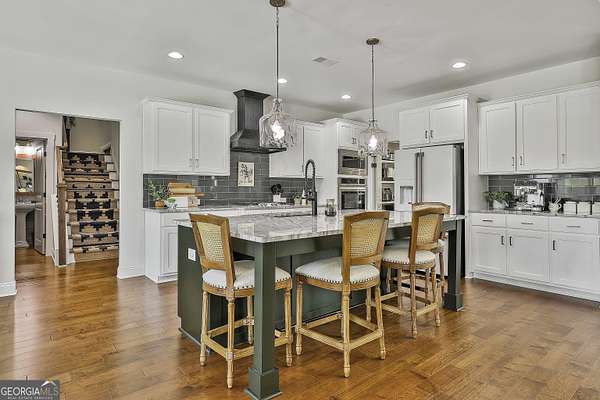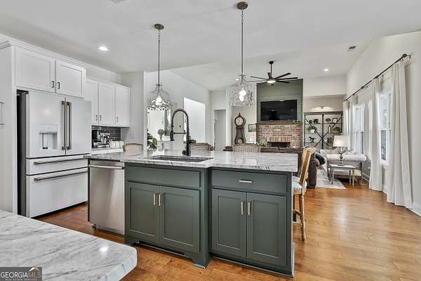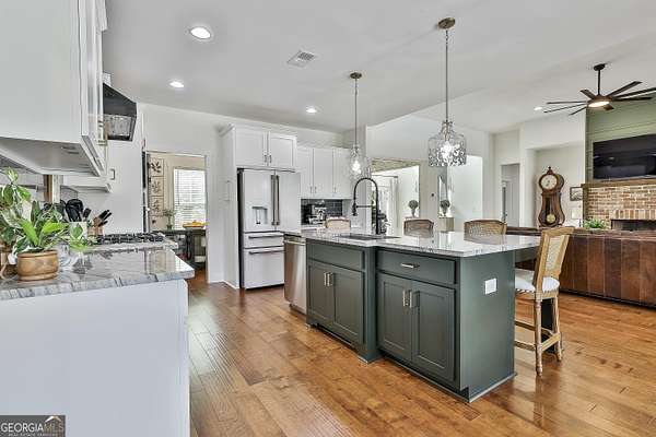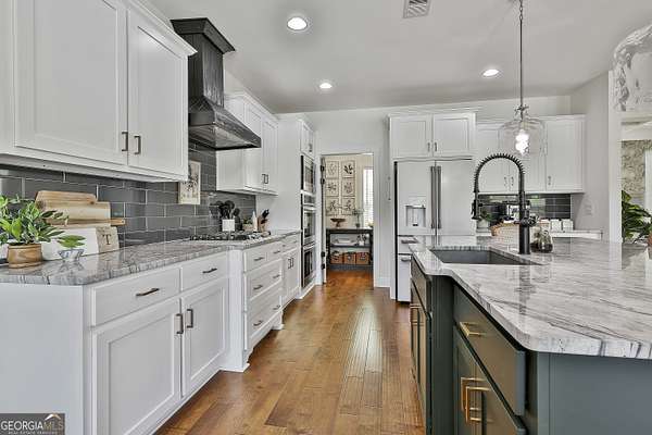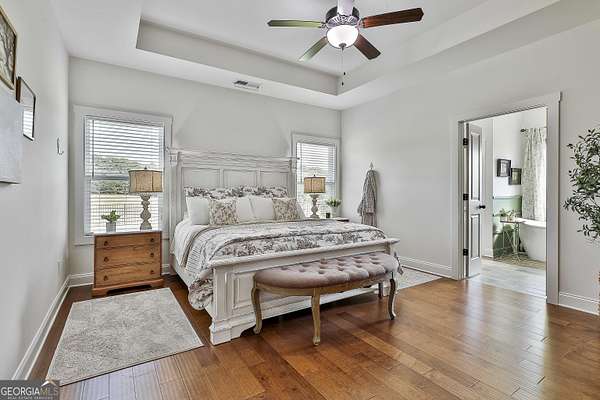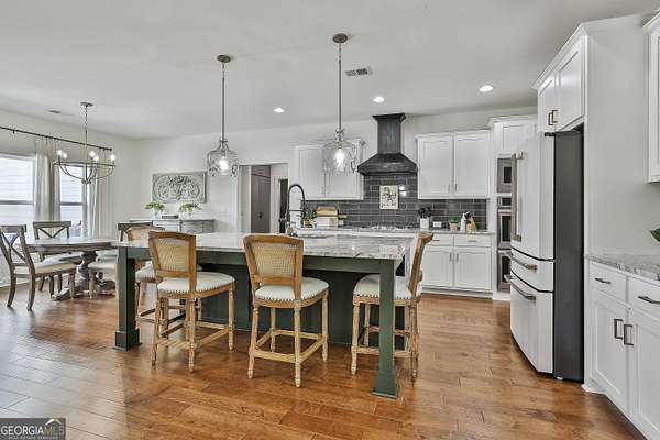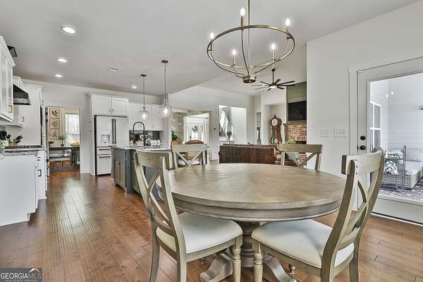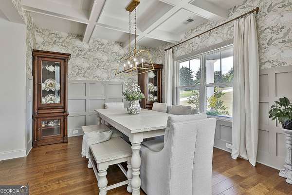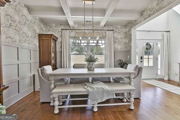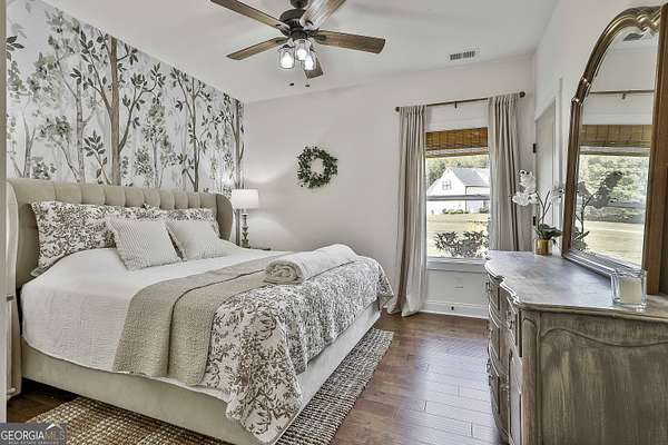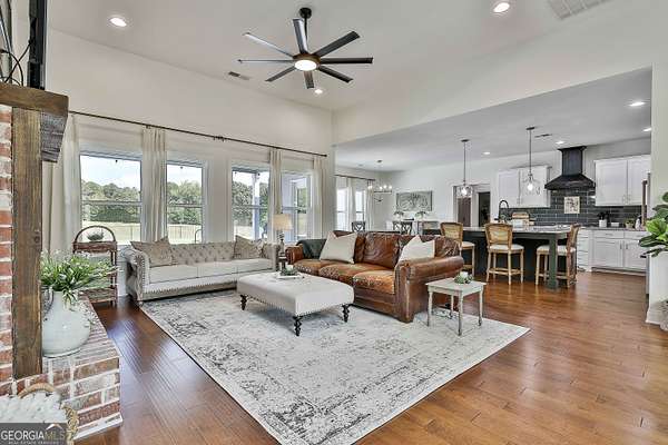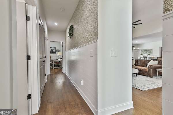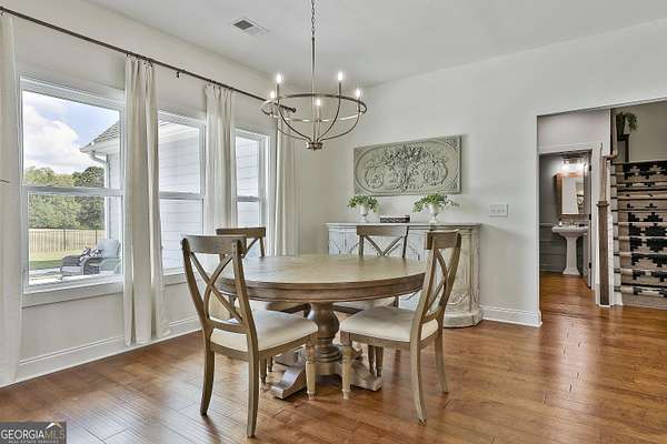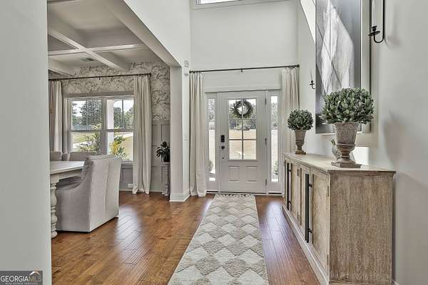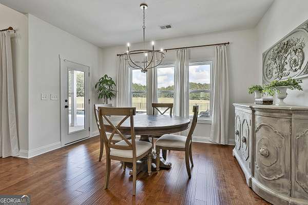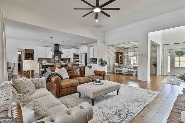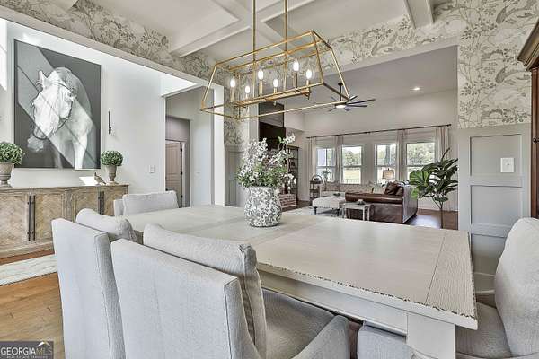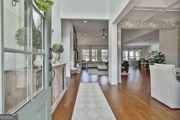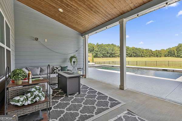 Welcome to 836 Old Greenville Road, a private 5.64-acre retreat in Fayetteville where modern design meets country charm. Built in 2019 by Trademark, this 5-bedroom, 3.5-bath home showcases the sought-after Mill Creek floor plan and offers thoughtful upgrades inside and out. At the heart of the home, a spacious family room with fireplace flows into a gourmet kitchen featuring double ovens, a large island with seating, custom pantry, and bright breakfast nook. A formal dining room with coffered ceiling adds a touch of elegance for gatherings. The main-level primary suite is a private sanctuary, boasting a spa-inspired bath with dual vanities, a soaking tub, a separate shower, and an oversized walk-in closet with direct access to a thoughtfully designed laundry room complete with custom cabinetry. Three additional bedrooms on the main level share a stylish double vanity, all set against the backdrop of rich hardwood flooring throughout. Upstairs, a secluded guest suite with a full bath offers comfort and privacy for family or visitors. Outside, discover your personal resort-style retreat. A newly constructed 8-foot deep concrete saltwater pool is the centerpiece, fully app-controlled - including an automatic pool cleaner, for effortless maintenance. The pool is surrounded by an expansive concrete deck which is finished with Kool Deck, ensuring a cool surface even in peak summer heat. Lush, professionally designed landscaping surrounds the pool, and house creating an idyllic setting for elegant entertaining or tranquil relaxation. Enjoy the covered back patio and a sprawling, level backyard adorned with fresh Bermuda sod and a 15-zone sprinkler system - also app-controlled - for seamless upkeep. Designer wallpaper accents and curated landscaping elevate the home's aesthetic, to make maintaining your acreage easy, the seller includes a brand-new Stihl zero-turn with purchase of the home. This estate blends refined living with the serenity of rural life, just minutes from the conveniences of Senoia, Peachtree City, and Fayetteville. Fresh interior paint throughout (2025) and pre-wired for a security system add to the turnkey appeal. Southeast Mortgage is our preferred lender. If buyer chooses to work with them, Southeast Mortgage will provide 1% credit up to $5,000. Reach out to the listing agent for more information.