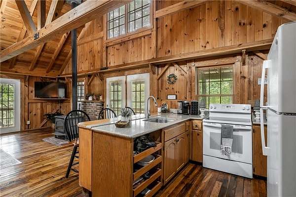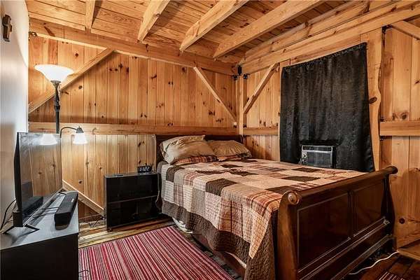 SELLER OFFERING $5000 toward closing costs or rate buy down!! Step back in time, to when life was simpler and more serene! This unique cabin is nestled on 11.95 acres, surrounded by majestic woods and nature's splendor. 2 bedrooms, 1 bath, and a loft area upstairs, perfect for relaxation. Mornings and evenings on the wrap-around porch will be a true delight, and the NEW metal roof is sure to make the rain more enjoyable. Enjoy the wood burning stove on those cold winter nights. A 16x16 shop is also included, ideal for woodworking enthusiasts or extra storage. Take leisurely walks on the property, pick fresh blueberries, and enjoy the wildlife, including deer and turkey. Turn this haven into your own peaceful retreat or a thriving Airbnb! This property holds immense potential, waiting to be unleashed. Schedule a viewing today and discover all this property offers!