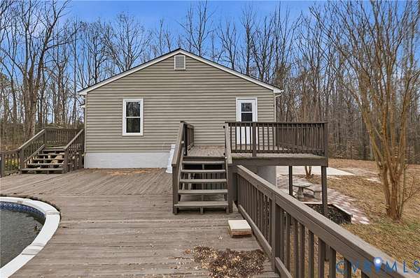 Welcome to peaceful country living in beautiful King William! Nestled on a sprawling 5-acre lot, this charming ranch home with a fully finished walkout basement offers the perfect blend of comfort, space, and privacy. A private gated driveway with coded access adds an extra level of security and exclusivity. Step into a welcoming foyer that opens to an expansive family room filled with tons of natural light, creating a warm and inviting atmosphere. Fresh paint throughout gives the home a bright, move-in ready feel. The open-concept kitchen and dining area flow seamlessly together, ideal for both everyday living and entertaining. The kitchen is equipped with stainless steel appliances, abundant counter and cabinet space, and convenient bar seating. The primary suite features an oversized closet and a private en suite bath complete with a tub/shower combination. Two additional bedrooms offer spacious closets and share a well-appointed full hall bath. Downstairs, the fully finished walkout basement expands your living space with a large recreation area, a convenient half bath, and direct access to the patio, ideal for gatherings or relaxing evenings at home. An attached oversized two-car garage adds functionality and storage. Outdoors, you'll love the incredible space this property provides. Enjoy summer days in the above-ground pool surrounded by decking, all while taking in the peaceful wooded backdrop that offers added privacy. Now is the perfect time to make this home yours and have the pool ready to enjoy by summer. With five beautiful acres to call your own, this property delivers the space and serenity you've been searching for.