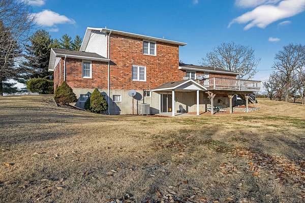 For sale: a charming Colonial-style two-story home located in the Ozarks community of Mountain Grove. Nestled on 16 park-like acres, this brick residence offers mature shade trees, a stocked pond, and a 30' x 40' shop building. The home and grounds have been lovingly maintained by the owner for many years. Inside, you'll find five bedrooms with the potential for more if needed, along with three full baths. The main level features maple hardwood flooring in the living room, office, and family room, where a wood-burning fireplace adds warmth and character. A separate dining room includes a pass-through window to the kitchen, and all appliances are included. Two bedrooms, a full bath, and the utility room are also located on the main floor. Upstairs, there are two additional bedrooms, an en-suite, a Juliet balcony, and an extra office that could function as another bedroom if desired. The lower level is unfinished but already includes the fifth bedroom and a bath, plus two spacious open areas perfect for a future media room, game room, homeschool space, or anything else you envision. Conveniently situated just west of town along the outer road of Hwy 60, this property provides easy access to the four-lane, ideal for commuters. It's less than an hour from Springfield, approximately 3.5 hours from both St. Louis and Kansas City, and only a short drive to Missouri's scenic rivers and streams for fishing, floating, hiking, and camping. No restrictions and no HOA!