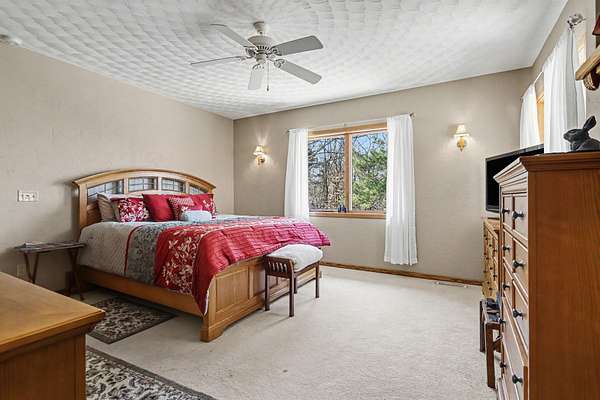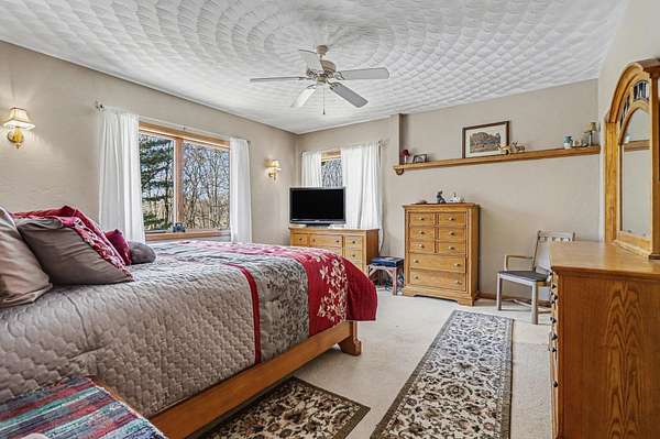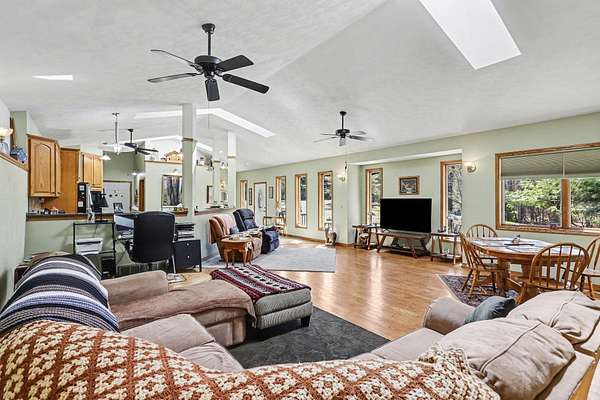 Harper Creek amazing bunker style built ranch home. New roof, gutter guard and paint. 12'' poured concrete foundation with #5 rebar every foot, basement floor is 1 foot thick with 2 foot wide footings going front to back of house. 200 amp service with a 100 amp sub service, 3/4 inch hardwood floors. Awesome Anderson insulated windows. This beautiful home is secluded back on a 7.3 acre piece of property. The basement is all ready to be finished with a layout and plumbing for a kitchen/bedroom. You will love the natural light that the skylights bring into the open kitchen/living area. Wildlife runs through this property daily!!! All of this but still only 10 minutes to shopping and the city. Please call me for your personal tour asap.