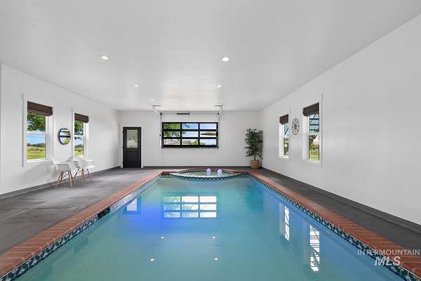 Major Price Reduction! Welcome home to your 4.45 acres of private luxury, tucked away in a quiet neighborhood 2.45 landscape acres fully irrigated & 2 acres fully fenced pasture offers endless possibilities to add another shop or ADU. The ideal combination of luxury outdoor living, beautiful scenery & views in all directions. Enter into a two-story grand foyer that leads up to your main living/2nd floor. A spacious open concept great room with a 2nd story trek deck to take in sunsets, sunrises & cityscape lights at night. A large kitchen offers tons of counter space & a waterfall island. Quartz countertops & soft closing custom cabinets & drawers. Hidden pantry, Bosch appliances & heat induction stove top. On this main level is your private suite, en suite, office & half bath. On the first floor you will find your secondary bedrooms, media room, 2 full baths with walk-in showers fully tiled. Option for a home gym in your rec room or junior suite. A unique indoor heated pool & spa for year-round pleasure that opens up to a private patio w/ rollup door. And a 40' x 50' shop too!