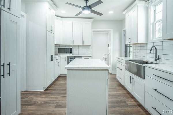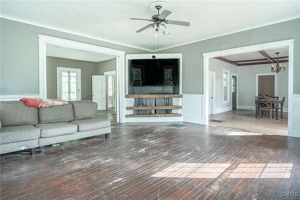 Come check out this incredible Historic Home located in the heart of Evans Mills right by Fort Drum! This beauty boasts almost 3000 sf and 1.5 acres and offers public water, sewer and gas! Beautiful wrap around porch, stunning newer kitchen and downstairs bath all updated! So much old historic charm and character and a lot of privacy! Bedrooms on both levels with a full bath on each floor! Large barn/garage for plenty of storage! DO not miss out on this one!