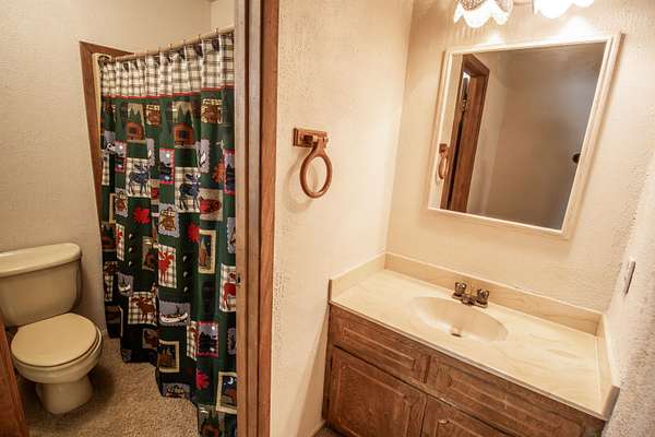 - Bookcases, Carpeting, Ceiling Fan, High Ceilings, Partial Curtains, Shades/Blinds, Tile Flooring