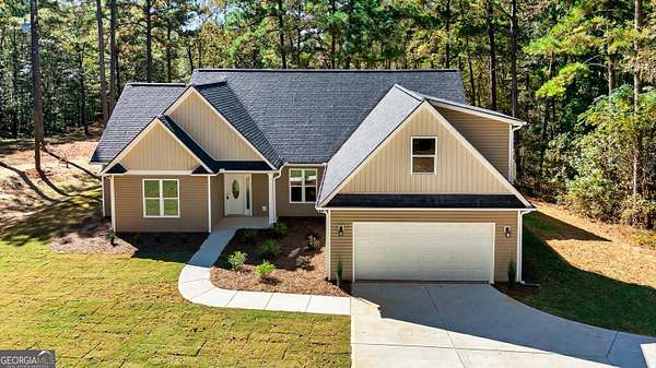 New Construction Beautifully treed 3.33 acre lot, Private driveway. This Craftsman Home offers a split bedroom layout, 4 bedrooms and 3 bathrooms, open concept living/dining. Kitchen opens to living area. Vaulted living room ceiling large French door leading to back porch. Recessed lighting in multiple areas. The Large kitchen offers Quartz tops, soft close cabinetry, large breakfast island, and the stainless-steel appliance package includes electric range with microwave and a dishwasher. The bedrooms have carpet and the rest of the home has LVP (luxury vinyl flooring). The owner's suite is private and on the opposite side of the home from the secondary bedrooms. This suite has vaulted ceilings, a large walk-in closet and a beautiful spa like bathroom with comfort height double sink vanity and oversized tiled shower with frameless door, soaking tub and additional closet. Large two car Garage. Total electric home. No HOA fee. Owner Builder and realtor. *Taxes based on vacant land* Comes with 2-10 Home Buyers Warranty.