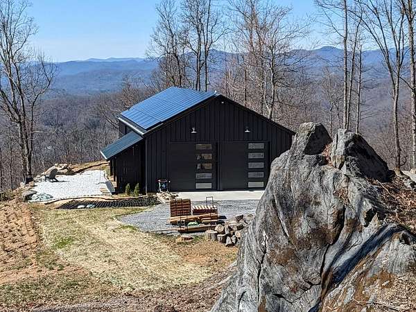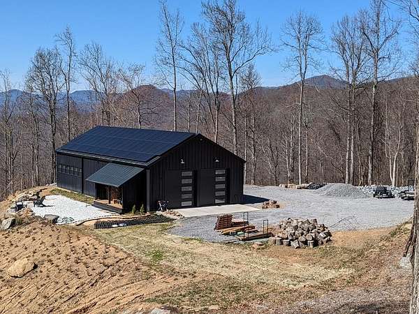 Nestled amidst the serene beauty of nature lies this pristine 209.66-acre wooded mountain retreat. Discover tranquility with streams meandering through, adorned with small waterfalls and springs, creating a picturesque landscape. Interior gravel roads wind through the forest glens, offering easy access to every corner of this vast property. At its heart stands a new 1800 sq. ft metal building or partially complete barndominium /workshop with well and plumbing, and it is powered by a 16.4 kW solar system, ensuring complete off-grid living. With enough power to sustain a home and the workshop, and boasting 90 hours of kWh lithium battery storage, reliability is guaranteed. Perched at elevations reaching up to 3900 ft, enjoy breathtaking views of the Smoky Mountains and explore rocky outcroppings. This is the epitome of mountain living near Franklin and Highlands, NC.