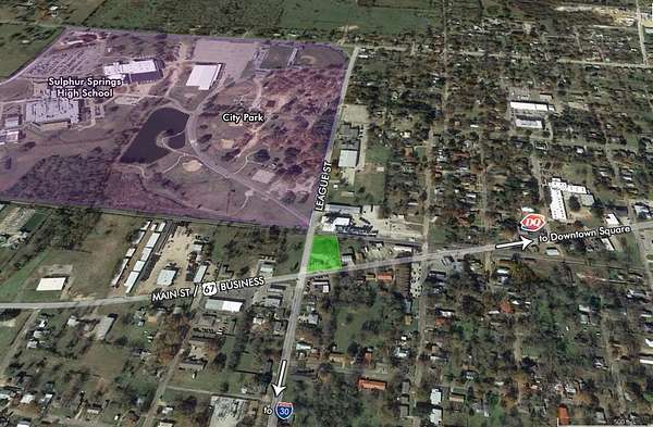 High-visibility commercial corner lots located at the intersection of Business US 67 (Main St.) and League Street in Sulphur Springs. This offering includes three contiguous commercial lots totaling approximately 0.87 acres. The property offers excellent frontage and exposure on two well-travelled city streets with traffic counts of approximately 5,500-6,000 vehicles per day on Business US 67 and around 3,700 vehicles per day on League Street. A true corner parcel provides strong visibility, multiple access points, and flexibility for site layout, signage, parking, or drive-thru design. Located less than half a mile from Downtown Sulphur Springs and minutes from the city park, schools, and established residential neighborhoods, this in-town location supports consistent daily traffic and repeat customer flow. The combined acreage and high commercial zoning allows flexibility for a variety of commercial uses (buyer to verify zoning and permitted uses.) Utilities are available nearby, and the site offers convenient access while remaining only a short drive to Interstate 30. A rare opportunity to acquire an assembled corner heavy commercial site in an established, high traffic area of Sulphur Springs.