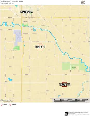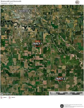 Tract 1 - 241+/- Acres - $2,156,950 - Madison County, NE This parcel near Norfolk, NE lies nearly flat and has good access with a hard surface road to the west and well maintained county road to the south. There is ample water to supply the two 7-Tower Zimmatic center pivots. The south pivot is powered with a 100hp diesel Cat power unit and has an Amarillo gearhead. The north pivot is set up with a 30hp US Electric motor. The well has a new column, stem, and pump. With numerous competitive grain markets in the area this makes for an ideal farm. Legal Description: SW 1/4 NE 1/4 and S 1/2 NW 1/4 and SW 1/4 12-23-1, Madison County, NE Property Taxes (2025): $13,407 Total Acres (per assessor): 241+/- Irrigated Acres: 196.74+/- Dryland Acres: 6.51+/- Grassland Acres: 32.53+/- Other Acres: 5.22+/- Irrigation Information Well G-175808: Drilled in 2012, 700 GPM, 16? Static Level, 40? Pumping Level, 110? Well Depth ... New column, stem, and pump. Well G-134263: Drilled in 2003, 700 GPM, 15? Static Level, 33? Pumping Level, 68? Well Depth Well G-1153329 (stock well): Drilled in 2002, 20 GPM, 7? Static Level, 45? Pumping Level, 54? Well Depth Two 7-tower Zimmatic center pivots North Pivot: 30HP US Electric Motor South Pivot: 100HP Diesel Cat Power Unit with Amarillo Gearhead Located in the Elkhorn NRD 208 Certified Irrigated Acres FSA Information Total Cropland Acres: 231.85 Corn: 197.60 Base Acres - 153 PLC Yield Total Base Acres: 197.60 Base Acres Open for the 2026 season. Tract 2 - 160+/- Acres - $1,432,000 - Stanton County, NE Here is a great opportunity to own this irrigated, highly productive farm between Norfolk, Stanton, and Madison. There are multiple grain markets in the local area. It lays with a gentle slope and has good access on the well maintained county roads. There is a 7 Tower Valley pivot with a 75hp US Electric motor and Sargent pump. In 2022, a new well was put in on the southwest corner with new underground to the pivot. Legal Description: NW 1/4, 9-22-1E, Stanton County, NE Property Taxes (2025): $6,577.02 Total Acres (per assessor): 160+/- Irrigated Acres: 147+/- Dryland Acres: 1.68+/- Grassland Acres: 6.48+/- Other Acres: 9.89+/- Irrigation Information Well G-063647 - Drilled in 2022, 750 GPM, 52? Static Level, 66? Pumping Level, 190? Well Depth 7-tower Valley pivot 75HP US Electric Motor Sargent Pump Located in the Elkhorn NRD 147 Certified Irrigated Acres FSA Information Total Cropland Acres: 148.68 Corn: 143.7 Base Acres - 178 PLC Yield Total Base Acres: 143.7 Open for the 2026 season.