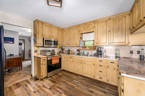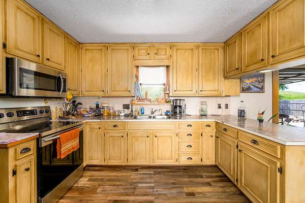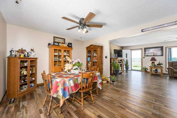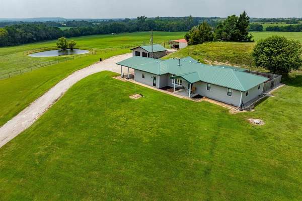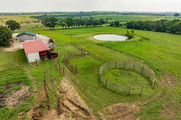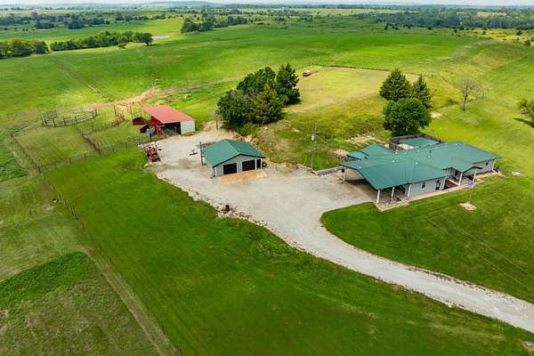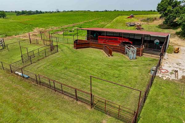 Lots of properties say 'Well Maintained'....HOWEVER....I'll venture to bet you won't find one that has been better maintained than this one! Pride of Ownership is over the top with this entire property! The home boasts an open floor plan with great views and tons of amenities! The fenced back yard includes a covered patio and gravel area for relaxing and would be a great spot for a hot tub! The storm shelter is just outside the back door and is ground level so it is extremely easy access! The attached garage is very roomy and there is an attached carport to it that allows for more vehicles to park protected! The separate large shop has electricity as well as wood stove heating and air conditioning. Your livestock have 3 ponds to cool off in and a 30 X 60 drive thru lean-to barn with 5 stalls for them to get shade and cover from Kansas weather! Included are 23 acres of fescue hay meadow and approx 20 acres of bluestem pasture that has recently been hayed. There are working pens in front of the lean-to. The WILDLIFE? It is Abundant and it doesn't get much better than being able to get your buck on your own land! LOTS of wildlife roam this property! The ponds, trees and cover that they look for is here also! This home could be right out of a magazine...call to make your appointment to see it today....you will not be disappointed! Seller still lives here so please allow 24 hour notice. Seller is contingent upon a purchase out of state.