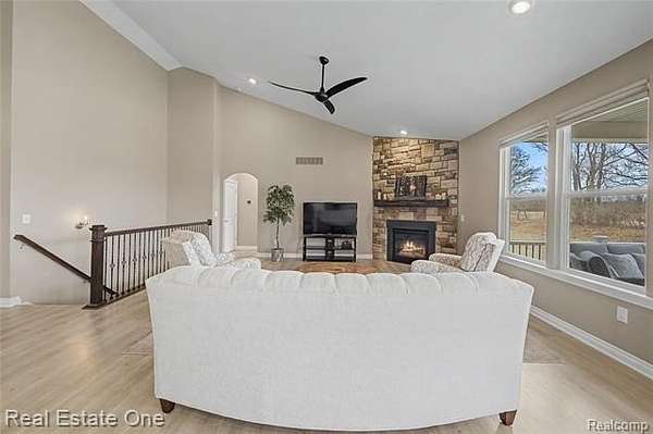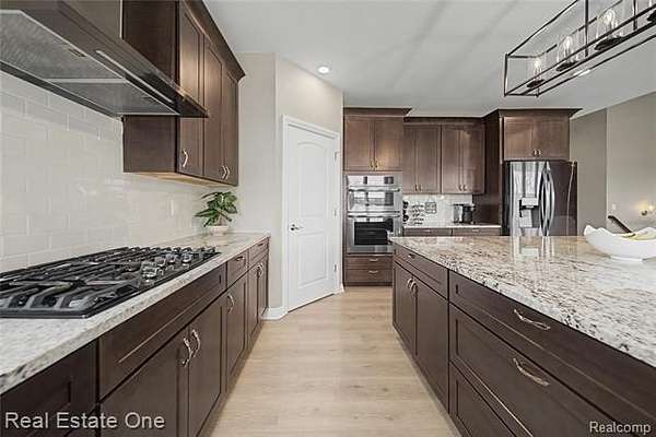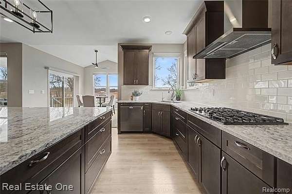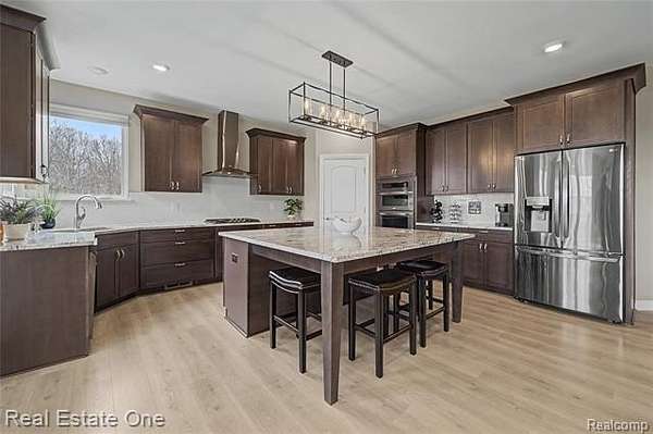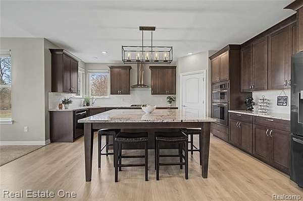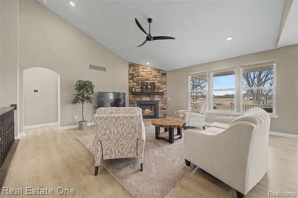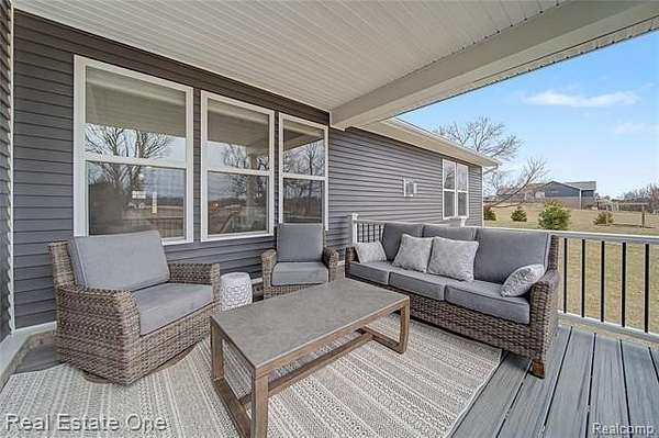 Why build when you can move right into this almost new and luxurious and sophisticated ranch on 2.63 acres in Hartland schools! A modern masterpiece with luxury vinyl flooring throughout and an open layout that drenches the space in sunlight. Kitchen is a host’s dream with a spacious island, offering space for both food prep and additional seating. Featuring stainless steel appliances, granite countertops, dark cabinetry, and a coffee bar. Cozy dining room tucked into a room with windows on every wall and access to the covered raised composite deck overlooking the expansive backyard. Opening to the living room with an exquisite stone floor-to-ceiling fireplace, ideal for creating both warmth and ambience. Primary bedroom is its own oasis with a spa-like full bath and extravagant walk-in closet. Partially finished daylight basement offers an additional family room space, great for cozy get togethers or large gatherings. Second kitchen and full bath add both convenience and functionality to the space. This home is perfect for those who want to own their own slice of land, who enjoy soaking in the serenity of nature - a rare opportunity to own a manageable slice of paradise. Pole barns are permitted! The perfect balance between rural charm and modern living, explore this home today!