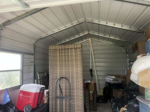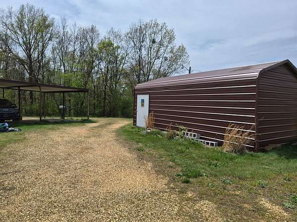 Rural area, no zoning. This home has 3 bedrooms, 1 bath, with a storage room and laundry added. All appliances, including the washer, dryer, and deep freezer. Has room for a garden or additional buildings. Also has a 2-car carport, a metal building/multi garage. New roof, new electric box (inside and outside), plus updated electrical, and septic tank pumped. Mobile home on permanent foundation. Window A/C and natural gas heaters. It also has an in-ground storm shelter.