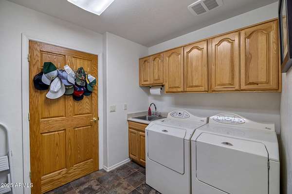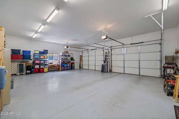 Car enthusiasts and hobbyists will love the garage setup: two oversized 3-car garages (5+ car capacity). One features epoxy floors, a heater, 220V outlet, sink with hot/cold water, built-in workbench, vice, and grinder; the other includes additional storage, a wet bar, and room for every toy.