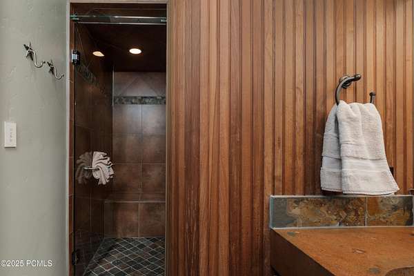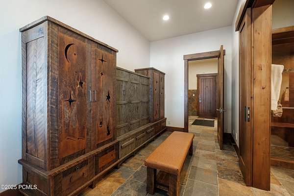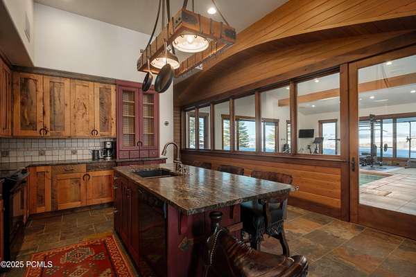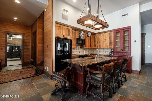 - 9 ft Plus Ceiling(s), Ceiling Fan(s), Double Vanity, Gas Dryer Hookup, Jetted Bath Tub(s), Kitchen Island, Main Level Master Bedroom, Pantry, Ski Storage, Steam Room/Shower, Vaulted Ceiling(s), Walk-In Closet(s), Wet Bar