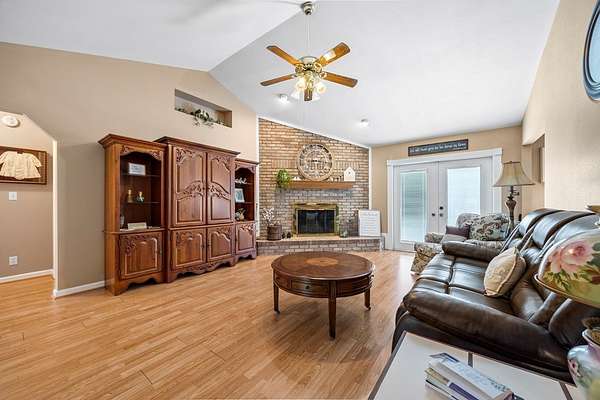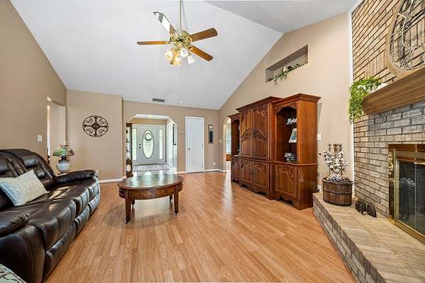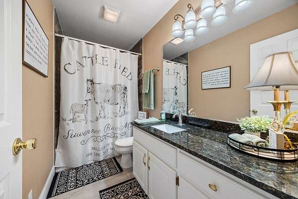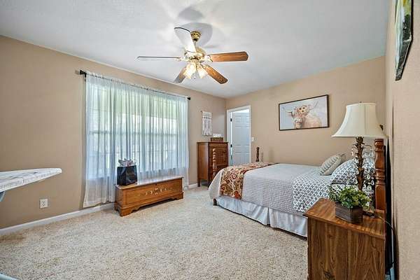 Modern Farmhouse living with convenience at 8378 264th St, Branford, FL. This beautiful, turn-key custom-built 2 bedroom, 2 bath brick home sits on 6.25 fully usable acres along a paved road—perfect for those seeking space, privacy, and freedom. Bring the animals and enjoy the benefits of no deed restrictions. The home features an oversized bonus room, a spacious laundry room with abundant storage cabinets, and an island kitchen with breakfast nook and bay window. The kitchen is well-appointed with granite countertops, NEW oven & microwave unit, cooktop with grill, and ample workspace. A warm and inviting living room showcases a wood-burning fireplace and French doors that open to the patio, ideal for indoor-outdoor living. There is also a large formal dining room perfect for gatherings. The owner's suite offers peaceful views of the backyard through a large bay window, a generous walk-in closet, and an updated bath with double granite vanities, jetted soaker tub, and a large walk-in shower. A spacious guest bedroom and updated guest bath complete the interior. The metal roof is approximately 12 years old. Outside, the expansive yard is dotted with fruit trees, bushes, and grape vines (see documents tab for full list of fruit and amenities). A large workshop on slab with electricity and roll-up door adds excellent utility for hobbies, storage, or a home-based business. Ideally located less than a mile to Branford High School, approximately mile to the elementary school.