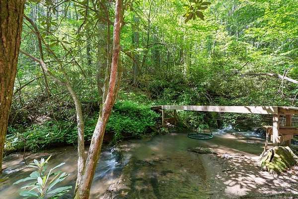 Escape to your own private paradise in this enchanting 2-bedroom, 1-bath cottage on 1.81 peaceful acres, where a charming path leads you to a breathtaking waterfall! Imagine the possibilities as this gem is currently a part-time vacation rental, offering both income potential & your own tranquil retreat. Step inside to discover beautiful hardwood floors & the peace of mind that comes with a newer metal roof installed in 2019, & plumbing was updated in 2017, house painted on the outside 2024. Unwind on the inviting screened-in front porch, complete with a relaxing hot tub, or savor the crisp mountain air & winter views from the lovely back deck. Tucked away at the end of a flat gravel road, & sits at a cool 3500 ft elevation, offering a welcome escape from the summer heat. Conveniently located just 8 miles from the delightful, charming town of Highlands & mere minutes from Sky Valley, Georgia, this wonderful cottage offers both seclusion & easy access to local charm & amenities. Willing to sell with 1.03 acres wothout the waterfall for a lower negotiated price.