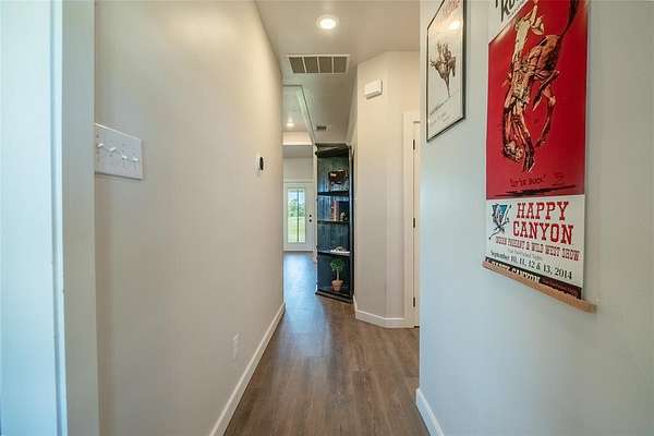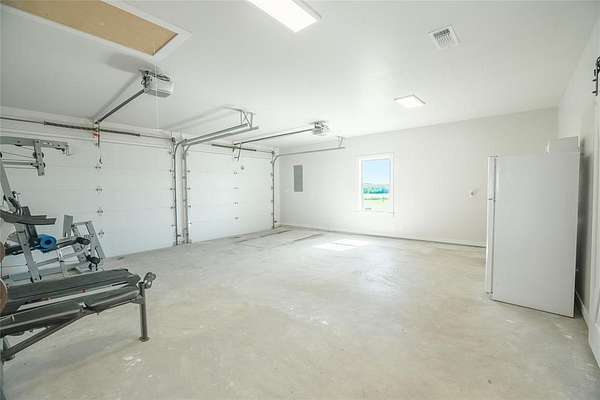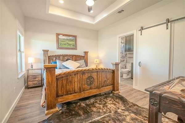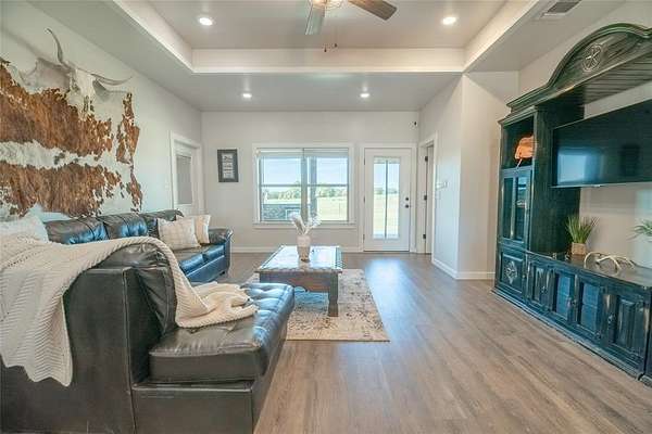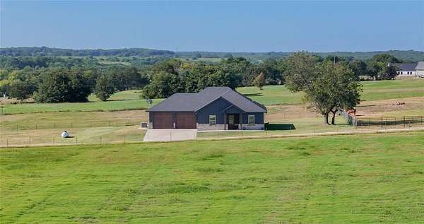 Welcome to 838 County Road 2121, where cozy country living meets well-planned equestrian amenities. This beautifully maintained 2-bedroom, 2-bathroom home is full of thoughtful upgrades including hardwood and tile flooring throughout, granite countertops, tiled showers in both bathrooms, tall ceilings, and a neutral color palette. The insulated, heated, and cooled garage is already plumbed and ready to be transformed into a spacious third bedroom with ensuite bath--ideal for a primary suite conversion.