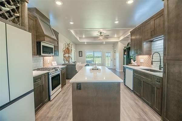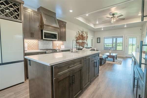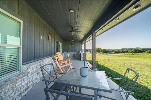 Step outside to a full-length covered back porch with an outdoor kitchen--perfect for relaxing while overlooking your scenic pastures.