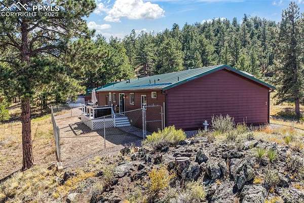 Welcome to a slice of Colorado paradise with spectacular views of the Sangre de Cristo Mountains. This incredible property includes nearly 80 acres featuring The Copper Bottom Lode & The Normandy Lode offering both land and mineral rights. It is a rare opportunity to own the land as well as what lies beneath it. The ranch style home offers main level living designed for comfort and functionality. The kitchen is beautifully appointed with stone countertops, stainless steel appliances, upgraded cabinetry, and a massive island. The sink looks out to the backyard, creating a peaceful view while you cook. Enjoy meals in the dining area or in the formal dining room. The spacious living room features a top of the line wood burning stove and forced air heat for year round comfort. The primary suite is a private retreat with a walk in closet and a luxurious five piece bathroom that includes a soaking tub, double vanities, a step in shower, and a private toilet area. Two additional bedrooms share a full bathroom with a tub and shower combination. There is also a convenient laundry and mudroom that offers access to the back deck. Step outside to explore all that this property offers. There is a detached oversized two car garage with an attached studio, powder room, and large closet that can be used as a hobby space, guest quarters, or home office. A huge storage shed provides plenty of room for equipment and tools. The property has a well and a cistern, giving you flexibility for water use. Composite decks on the front and back provide low maintenance outdoor enjoyment. There is a fenced dog area, chicken coop, and a tractor and log splitter are included. The land itself is truly breathtaking with mountain views, a stream running through the property, and acres of trees bordering BLM land providing utmost privacy and access to recreation. Whether you are dreaming of a peaceful homestead, a hobby farm, or an outdoor lover's retreat, this property offers it all.