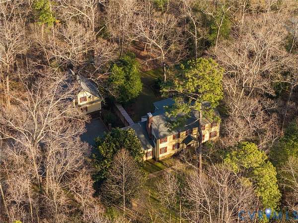 Situated perfectly on a sprawling two acre lot inside the Richmond National Battlefield Park, this Williamsburg style colonial home is packed with unique features worthy of its unmatched location. Just down the road from Fort Harrison, a central destination within the expansive and federally maintained park system, 8381 Battlefield Park offers privacy and abundant nature, enhanced by dozens of acres behind it in a conservation easement. The large, stately home is ready for personalization and some updates and offers multiple living spaces, with a formal living room, formal dining, eat-in kitchen with island, sunken sunroom bathed in natural light, and a well-appointed den with built-ins, beamed ceiling, and a brick fireplace. Additionally there is an extra flex room that could be used as a large first floor bedroom, office, or more living space, with expandable workshop space just beyond. Upstairs you'll find an impressive primary suite with gorgeous trim, dual closets, two en suite full bathrooms, fireplace, plus en suite laundry. Past the landing, there are two additional bedrooms and hall bath. The detached, oversized two car garage has unfinished space above for expandability or storage. Additionally, there is a garden house that also doubles as an extra one car garage. The back yard is a peaceful retreat with countless blooms awaiting spring, All this serenity sits about 15 minutes from Rocketts Landing and Church Hill, 20 from Downtown, and a quick bike ride, without leaving the park, to the Capital Trail, for over 50 miles of protected cycling or walking to Downtown Richmond or Jamestown. Just minutes from marinas, public boat landings on the James River, and The Lilly Pad.