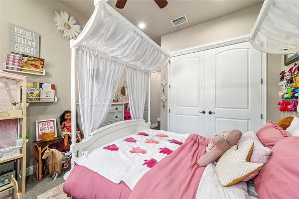 - Built-In Features, Ceiling Fans(s), Eat-In Kitchen, High Ceilings, Kitchen/Family Room Combo, Open Floorplan, Primary Bedroom Main Floor, Solid Wood Cabinets, Split Bedroom, Stone Counters, Thermostat, Tray Ceiling(s), Walk-In Closet(s), Window Treatments