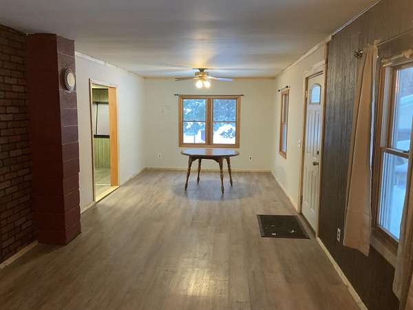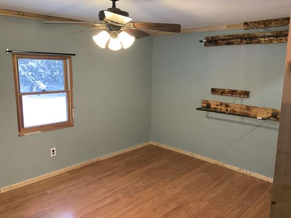 Est $823/moOne bedroom one bath home sitting on 10 fully wooded acres there is a 56 x 18 pole building half the floor is concrete half the floor is dirt. Across the road you will find federal land. To the south of the property across the river is also some state land. The home is a manufactured home with a build around, and addition there is only a small portion that remains. Very peaceful setting.