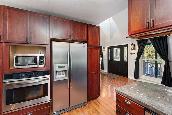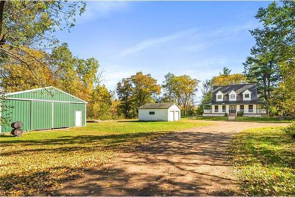 Beautiful 3 Bed 4 Bath home with plenty of land and outbuildings! As you approach the residence the covered wrap around porch leads to front entry. The main floor has open living room, dining, and kitchen with vaulted ceiling and gas fireplace. Chef's kitchen has stone countertops, five burner gas range, wall oven, and stainless appliances. Off the kitchen is the main floor laundry with 1/2 bath, second entry and a full bath down the hall. Main floor master suite features large walk in closet and full master bath. Hardwood staircase leads to the second floor bedrooms. Two additional bedrooms and a loft space that would make a great home office/library. The finished basement has a large family room, bonus room that can easily be turned in to an additional bedroom, and 3/4 bath. The wooded yard has a fire pit, swings and picnic table. There is a two car detached garage and additional 36x48 pole shed for your toys. This is a must see property!