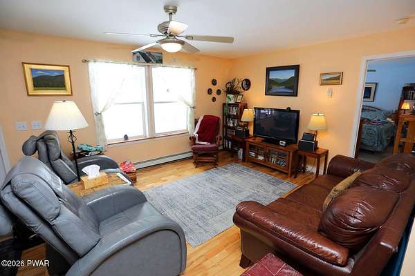 A rare find! This well-maintained 4 BR/2bath ranch home sits on 10 private acres in lovely Damascus, PA. This is a nature's lover paradise! The owner thoughtfully sited the home away from the road, for ultimate privacy. This provides a perfect viewing area to watch the birds and wildlife out your front window. The lawn has about an acre of cleared land; the rest is wooded with nice walking trails throughout. What a bonus: the property contains a historic bluestone quarry, which provided much of the stone for the St Joseph's Seminary in nearby Callicoon (now the Job Corps). Gorgeous wood floors throughout much of the home. There's a nice separation of the primary wing, located on one side of the home, and the other 3 BRs and utility room are on the other. The DR and laundry open to the spacious back deck... another private spot where you can enjoy nature and peace and quiet! The woodstove in the basement throws extra warmth in the winter. A big plus: there's a whole-house generator for peace of mind just in case the electric goes out. A covered front porch keeps the elements off you while entering with groceries. Located 2 minutes from the Delaware River access for fishing and water sports. Cross the bridge and you're in Callicoon, NY for a variety of shopping, terrific eateries, weekend Farmers Market, Cidery, Pickleball courts, bowling alley, movie theater and cool events. You're just 25 minutes to Honesdale, PA for big box stores and more variety. NO HOA fees here! Take a look, fall in love with our area, and get away from it all!