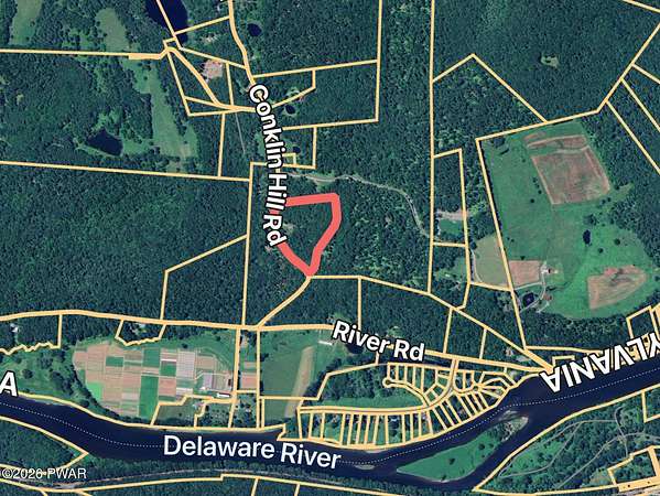From Honesdale, go out North Main to Hancock Highway. Go 4.5 mi to Oregon Turnpike. Right on Oregon Tpke. Drive 6.5 miles to end, turn right on to Cochecton Turnpike (PA-371 E). Drive 5.5 mi past Damascus School; go left on Galilee Rd. Drive 4.2 miles to address on left. NO SIGN..., Waze or any directional app will get you there. Last house on left before you go down the big hill to River Rd.