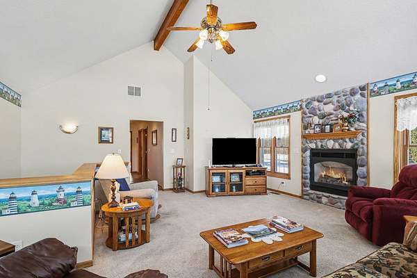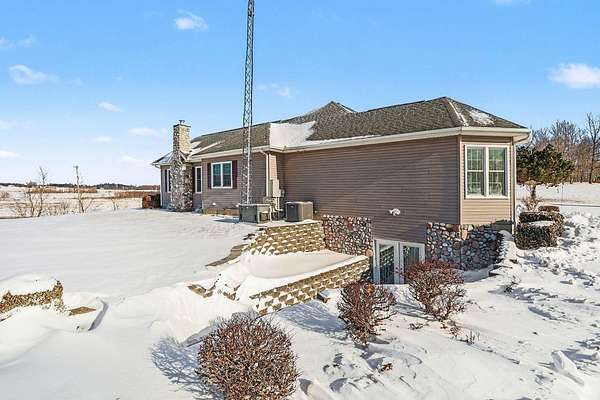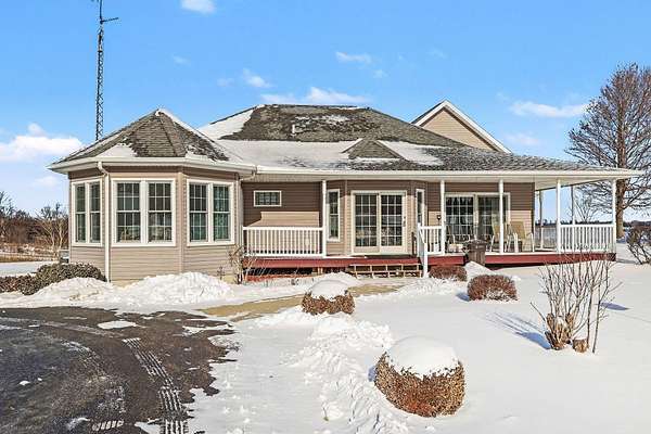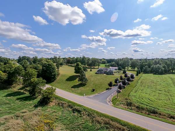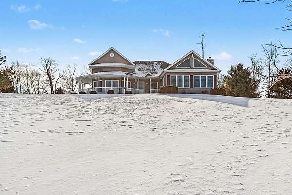Perched atop a scenic hill, this beautiful home offers breathtaking views for miles. Situated on 5 private acres, the property features a tree-lined paved driveway creating a grand first impression. Inside, you'll find a spacious and versatile layout with 3 bedrooms and the potential for up to 5, along with 3 full bathrooms. The main level includes an inviting eat-in kitchen with abundant cabinetry, a formal dining room perfect for entertaining, and not one--but two comfortable living rooms. The primary suite offers a private retreat with an updated ensuite bathroom featuring a walk-in shower. Convenient main-level laundry adds to the home's functionality. The finished lower level expands your living space even further, boasting a large recreation area, a third living room, ample storage, and a walkout to the outdoors. Home also includes a generator. A rare combination of space, privacy, and stunning views--this hilltop property is ready to welcome you home. Call listing agent today! This company makes no warranty or representations about the contents of this data including room sizes & sq. footage. It is the responsibility of the parties looking at the property to satisfy themselves as to the accuracy of this information. Taxes were obtained from the local assessor and the taxes could change for the buyer after a closed transaction