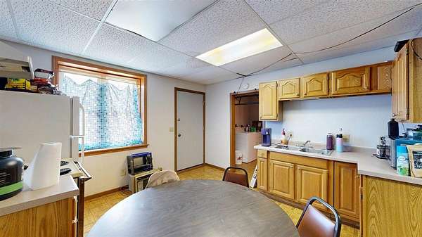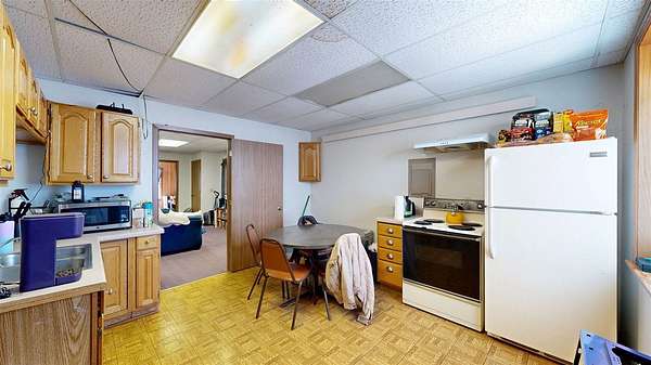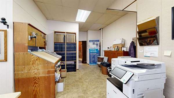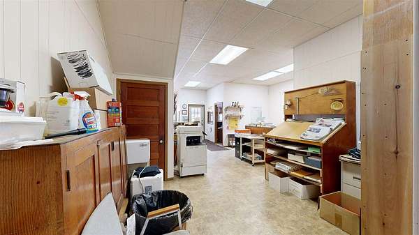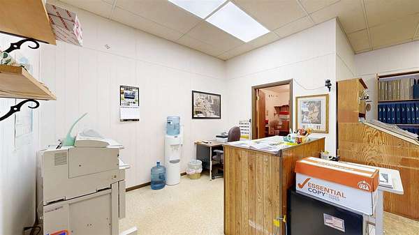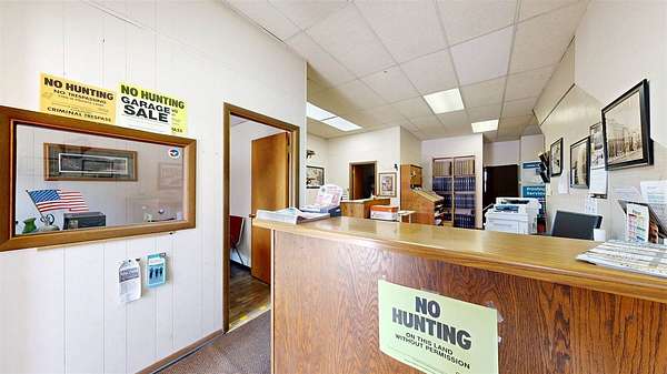 Versatile commercial opportunity! This property offers both business and residential potential under one roof. The main level is currently utilized as an office space for the local newspaper and features a functional layout including a private office, spacious main work area, large storage closet, two generously sized storage rooms, and a bathroom. An expansive unfinished basement provides excellent additional storage options. Above the commercial space, you’ll find a nicely sized apartment with its own private exterior entrances, both front and rear, offering convenience and separation for tenants. The upper unit includes two bedrooms, one full bathroom, a kitchen with room for a dining table, and a dedicated laundry area. Off-street parking accessible from the rear, accommodates both tenant and employee needs. Whether you’re looking to expand your business footprint, invest in rental income, or combine work and living space, this property presents flexible opportunities.