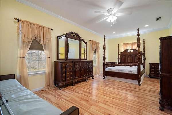 Welcome to this custom-built 2004 Grand Bay home situated on 1.85 acres Opportunity also exists to purchase the adjacent home, with both properties available together for $999,000 SEE MLS#7743504 Offering space, versatility, and endless potential. With approximately 3,013 square feet, this home features heavy crown molding, a spacious family room with wood burning fireplace, a beautiful gourmet kitchen with breakfast bar that flows seamlessly into the living and dining areas-perfect for entertaining. The main level includes a private primary master suite as well as a separate guest suite with kitchenette, ideal for extended family or guests. Upstairs offers additional bedrooms and a massive walk-in attic with the potential to expand and add even more living space. Step outside to find a separate 600 sq ft 1 bedroom mother-in-law suite, providing excellent opportunity for multi-generational living, rental income, or private guest quarters. This home could use some updates and TLC but offers incredible bones and value, including a brand new 5.5-ton two-stage HVAC system installed in 2024. You don't want to miss out on this rare opportunity!