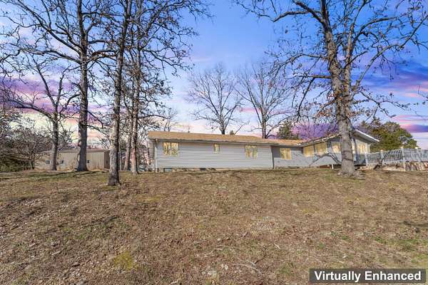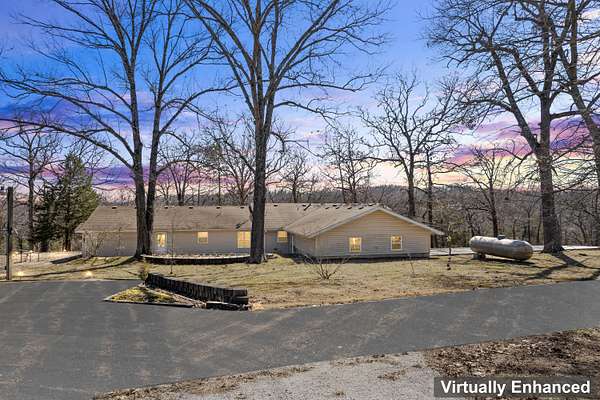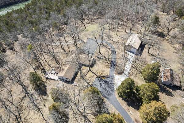 29.7 ACRES CHARMING LAKEFRONT RETREAT with Endless Potential is TURNKEY including all furnishings. This stunning 3-bedroom, 4-bathroom property was formerly designed to be a bed and breakfast and offers the perfect blend of comfort and tranquility. Each bedroom comes with its own private ensuite, ensuring a luxurious and private retreat for all. The spacious formal dining area is ideal for gatherings, while the breakfast nook provides a cozy space to enjoy your morning coffee. The kitchen features a large island, perfect for meal prep and entertaining. Relax in the heated and cooled sunroom or step out onto the large deck to enjoy the serene lake views.This property boasts lakefront access and great views of the Flat Creek arm of Table Rock Lake, offering excellent fishing opportunities and beautiful wildlife sightings right outside your door. The Flat Creek Restaurant and resort is just around the corner. Sitting on a private 29.7 acres, this property offers unmatched privacy and serenity. Whether you're enjoying the outdoors or storing your lake toys and yard gear, the large outbuilding provides ample space for all your needs. Make this one-of-a-kind property your family compound or a new home or investment opportunity. Experience nature, privacy, and lakefront living like never before! Perfect property for a charming Bed & Breakfast or Airbnb when fully approved by Planning & Zoning!
