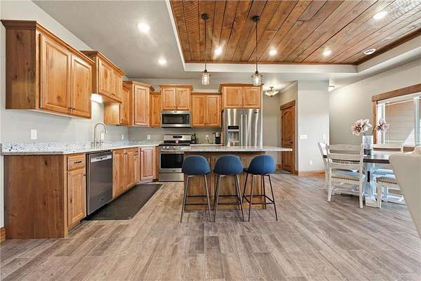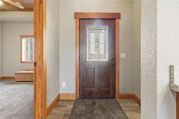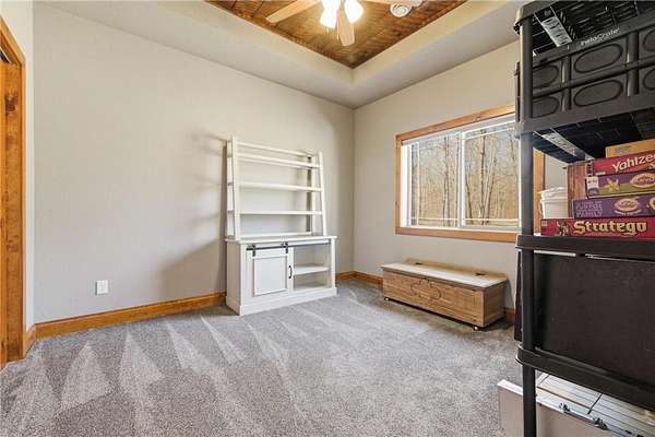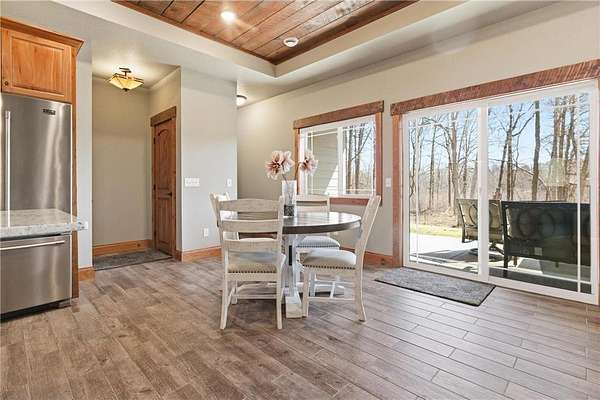 Step into effortless luxury with this stunning single-level patio home, perfectly set on a serene 2.79 acre lot. Designed for both comfort and style, it features a three-stall attached garage, soaring 9-foot ceilings accented by 10-foot pine-filled tray ceilings, and warm, timeless finishes throughout. From the inviting stone fireplace to the cherry kitchen cabinets and gleaming granite countertops, every detail is crafted to create a refined retreat with room to breathe. Mature trees and wetlands at the back of the property create a natural buffer while still being conveniently located just minutes from Pelican Lake, golf courses, restaurants and trails. Don't miss the chance to make it yours!