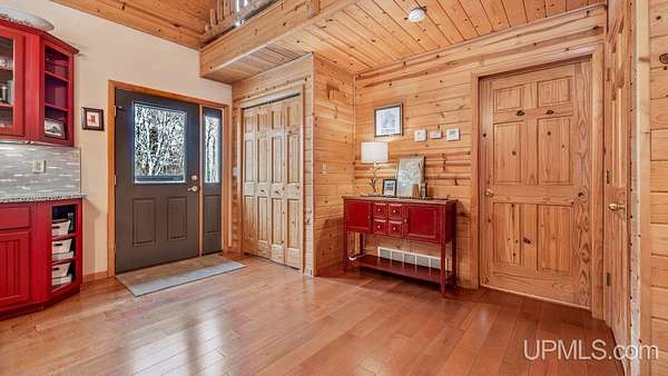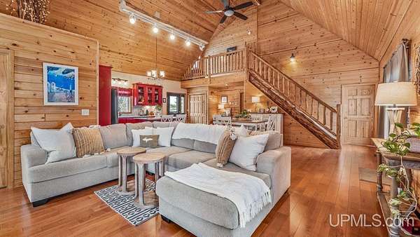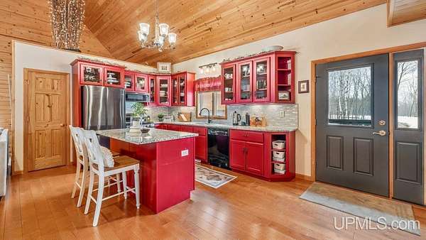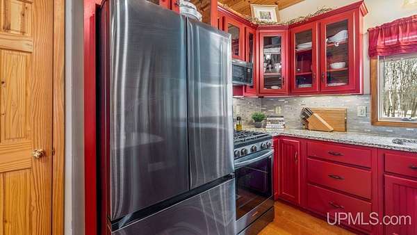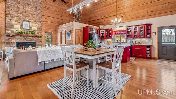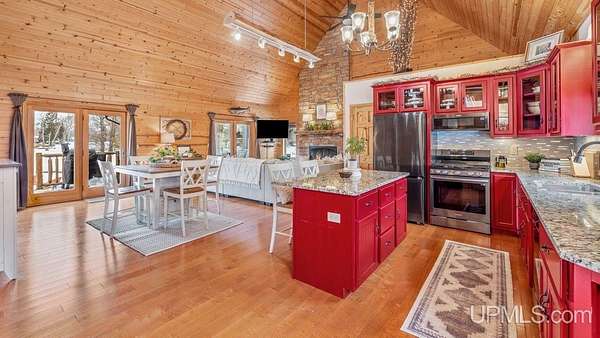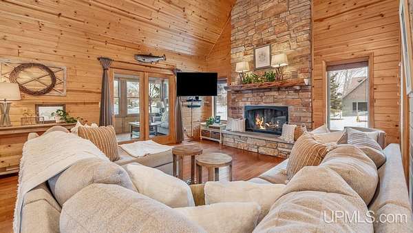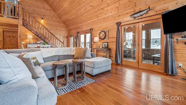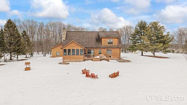 Gorgeous riverfront home with 17 acres and almost 300' of Whitefish river frontage. A perfect blend of serenity and proximity to both Rapid River and Escanaba. Not only is this home located on the beautiful Whitefish River, but it's near the Whitefish Basin, providing direct access to Lake Michigan. No need to dock your boat anywhere but your backyard! This solidly built home has an open concept layout with river views from every room. The updated kitchen has all stainless appliances, granite counters with a large island with bar seating. The main living area has gorgeous cathedral ceilings and a stunning floor to ceiling stone fireplace with custom mantel. Right off the main living area is a darling 3 season room with access to the back deck. Finishing off the main level are two bedrooms with a jack and jill bathroom, a mudroom with laundry, half bath and access to the attached 3 car, heated garage. Upstairs is a spacious primary suite with large private bathroom and a huge walk in closet. Hardwood flooring throughout with custom log staircase and railings. The finished crawl space is a huge bonus providing easy access to loads of storage space. The home is equipped with a back up Generac generator. Recent updates include central air, newer furnace, granite counters and new ceiling fans. There is also a detached garage for extra storage. Don't miss out on this amazing opportunity to own your own slice of riverfront paradise.